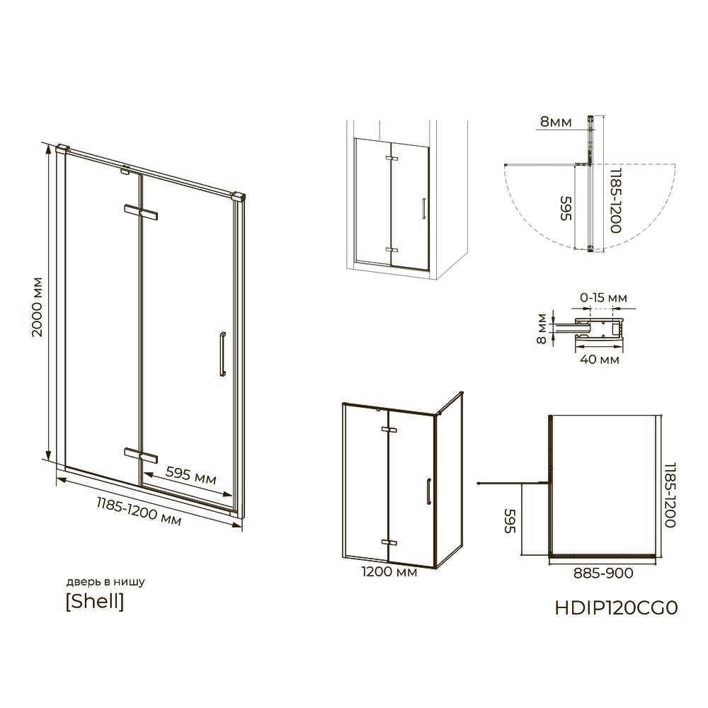 Душевая дверь в нишу Knotlor HDIP120CG0RB 120х200, бронза.