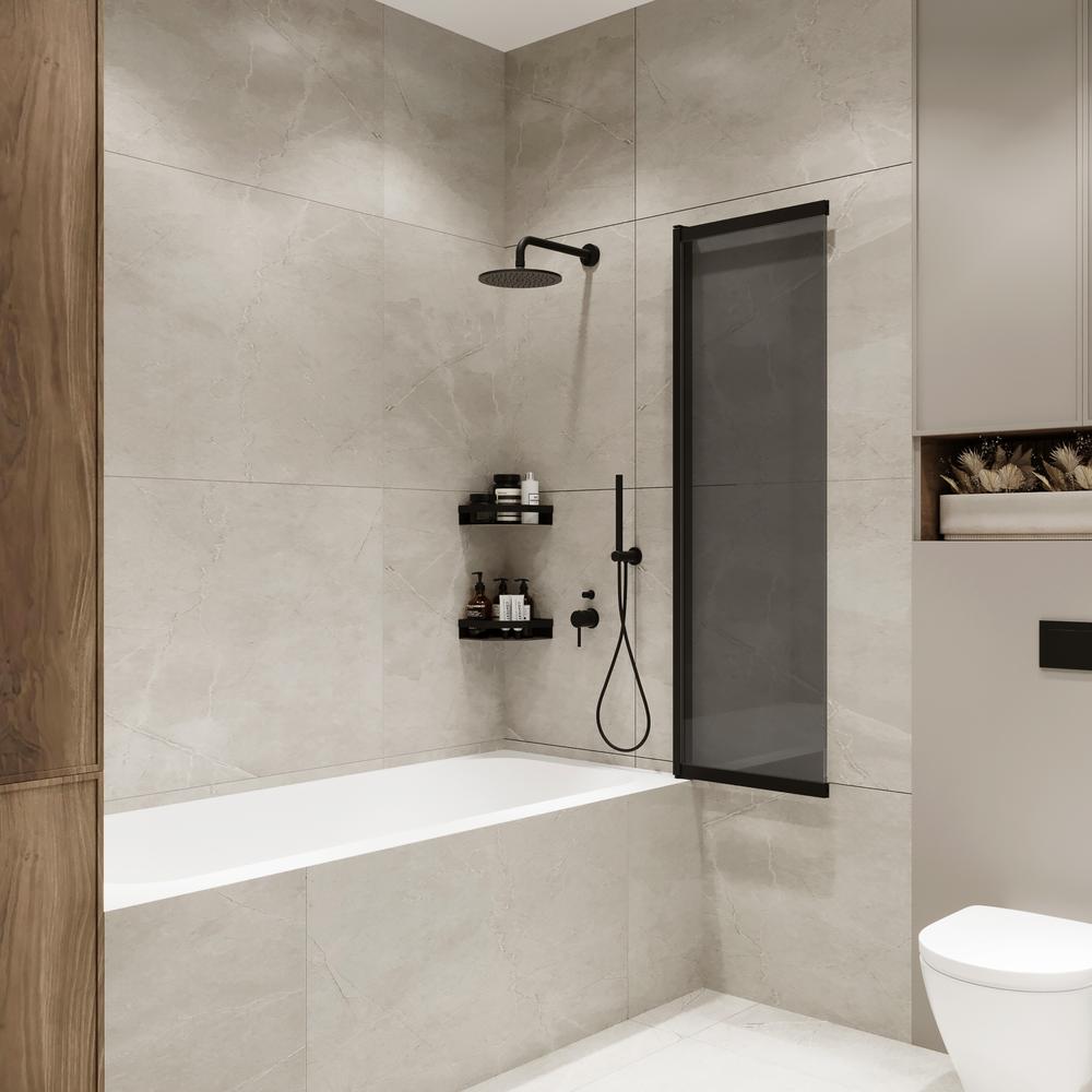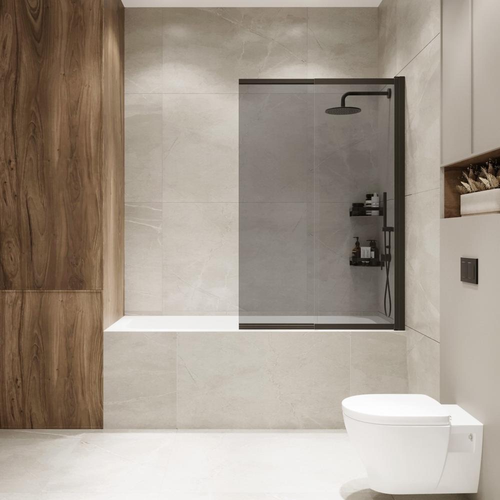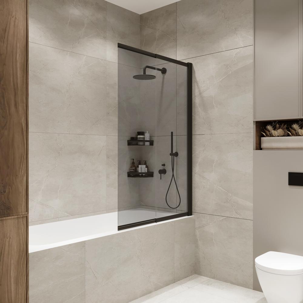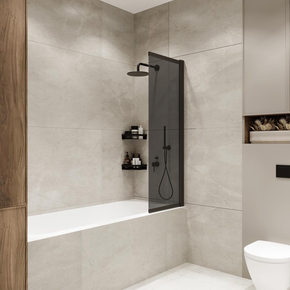 Шторка на ванну слайдер Terminus Ното 150х90 тонированная, черный