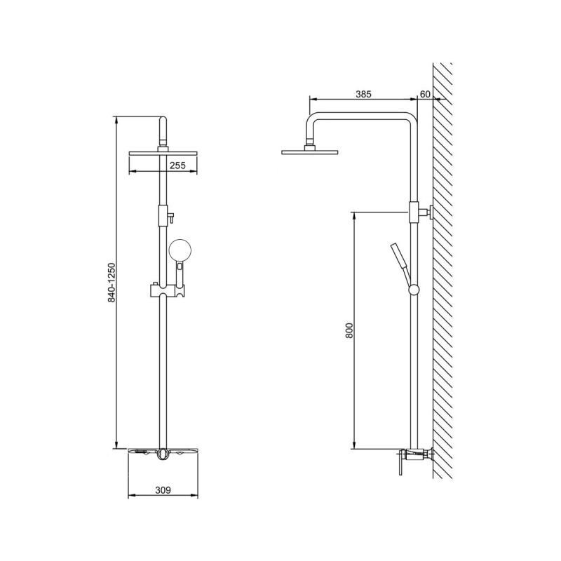 смеситель, душевая штанга с кронштейном верхнего душа, верхний душ, душевая лейка, шланг, эксцентрики, декоративные отражатели