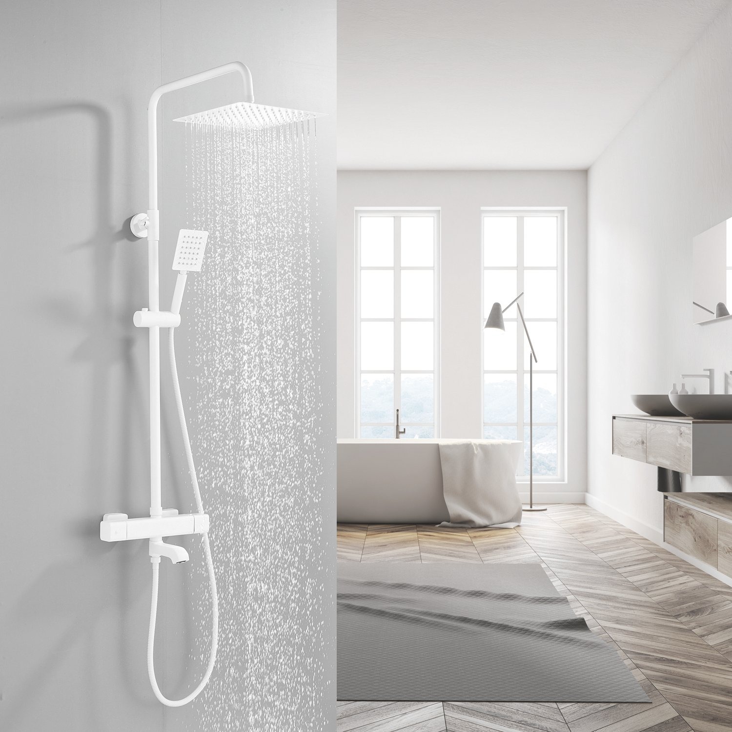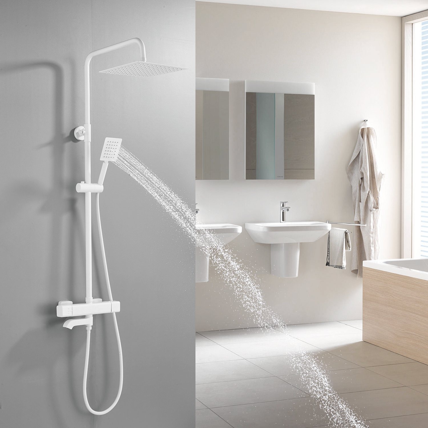 смеситель, верхний душ, штанга, лейка, шланг, эксцентрики, декоративные чашки