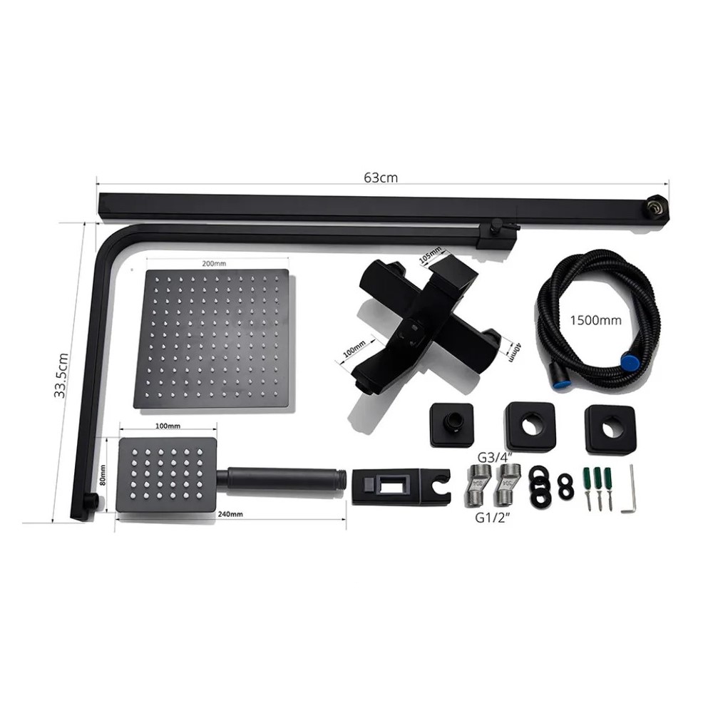 верхний душ, душевая штанга, держатель душевой лейки, ручной душ, смеситель, шланг, эксцентрики, декоративные чашки