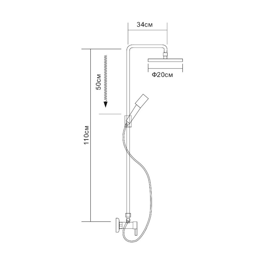 верхний душ, душевая штанга, держатель душевой лейки, ручной душ, смеситель, шланг, эксцентрики, декоративные чашки
