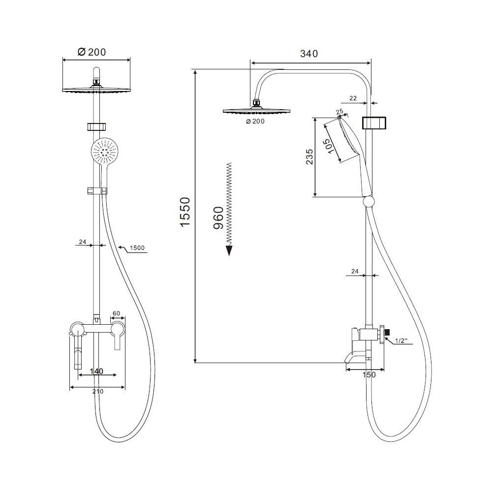 верхний душ, душевая штанга, держатель душевой лейки, ручной душ, смеситель, шланг, эксцентрики, декоративные чашки