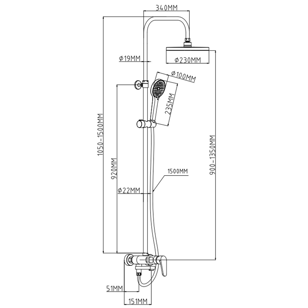 верхний душ, душевая штанга с держателем лейки, ручной душ, смеситель, шланг