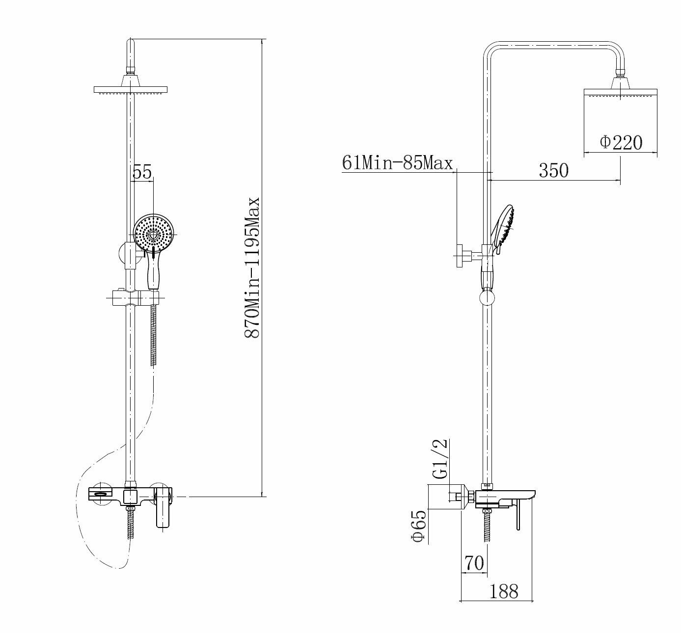 Размер верхнего душа, мм