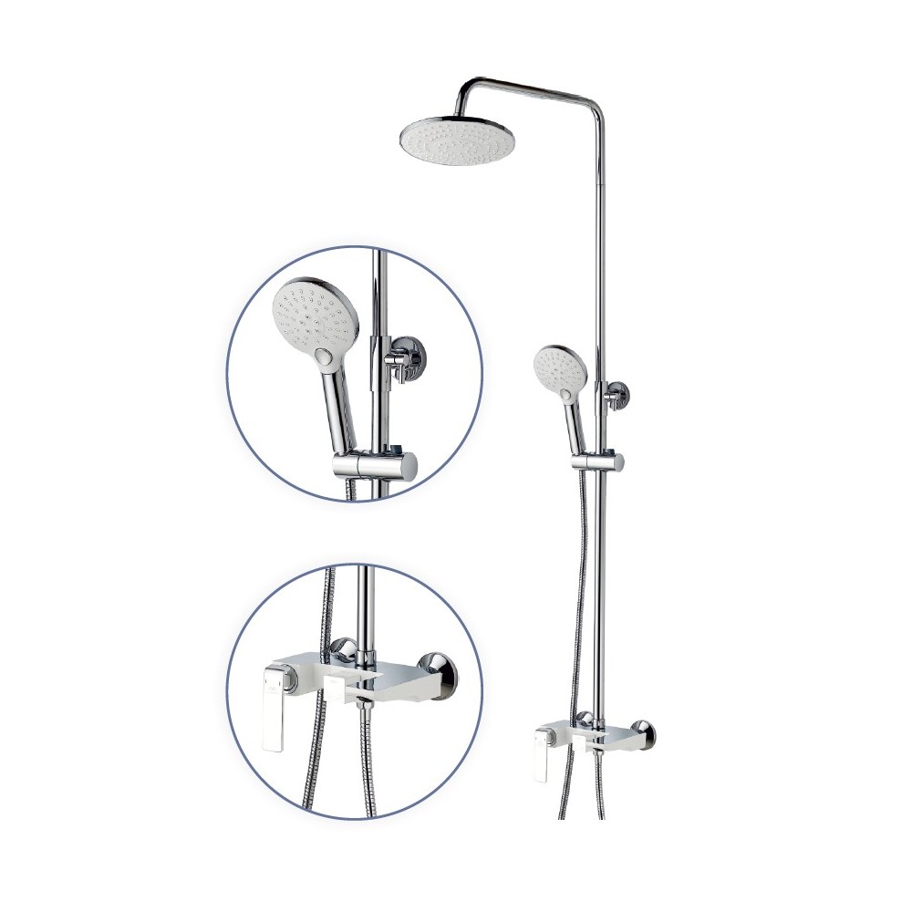 смеситель, верхний душ, штанга, лейка, шланг, эксцентрики, декоративные чашки