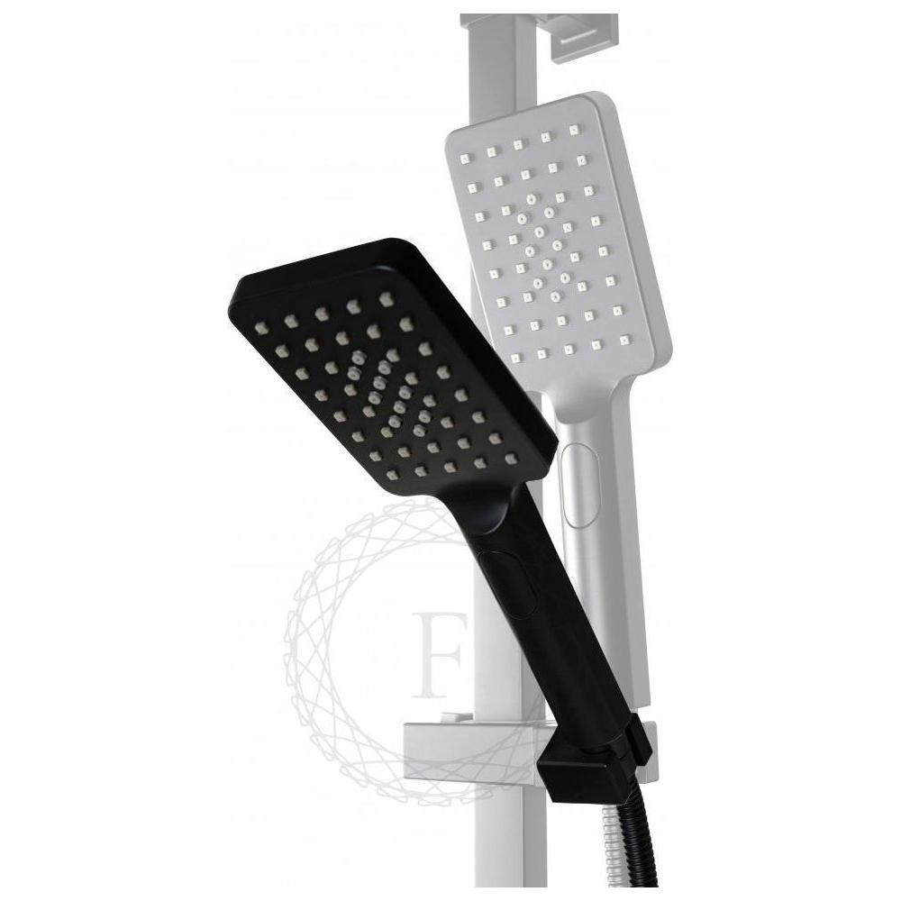верхний душ, душевая штанга с держателем лейки, ручной душ, смеситель, шланг, эксцентрики, декоративные отражатели