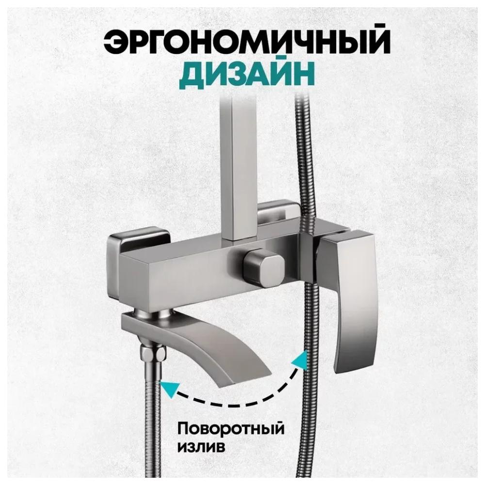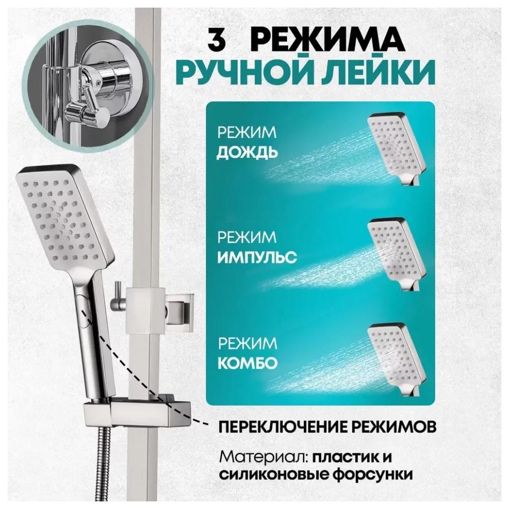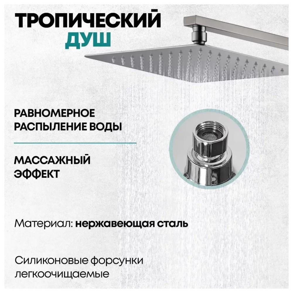 верхний душ, душевая штанга с держателем лейки, ручной душ, смеситель, шланг, эксцентрики, декоративные отражатели