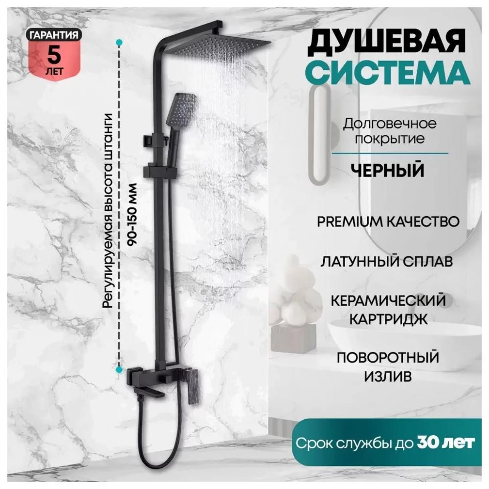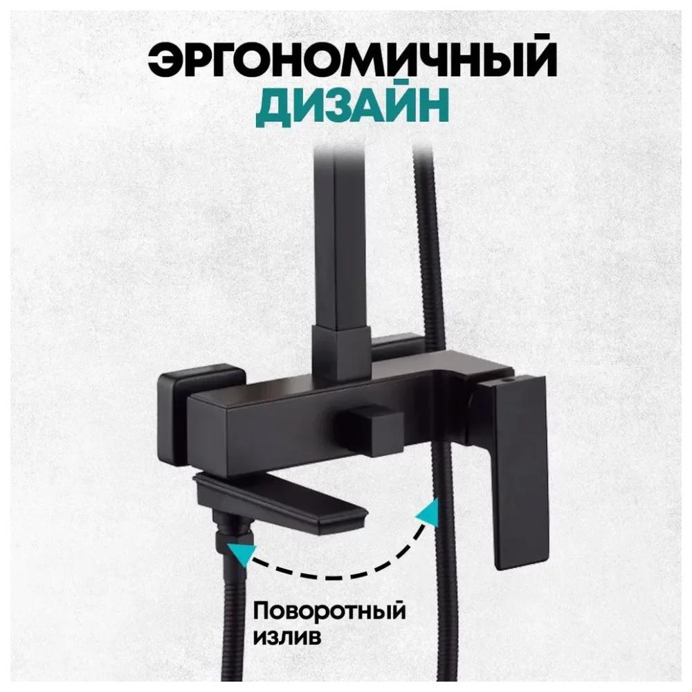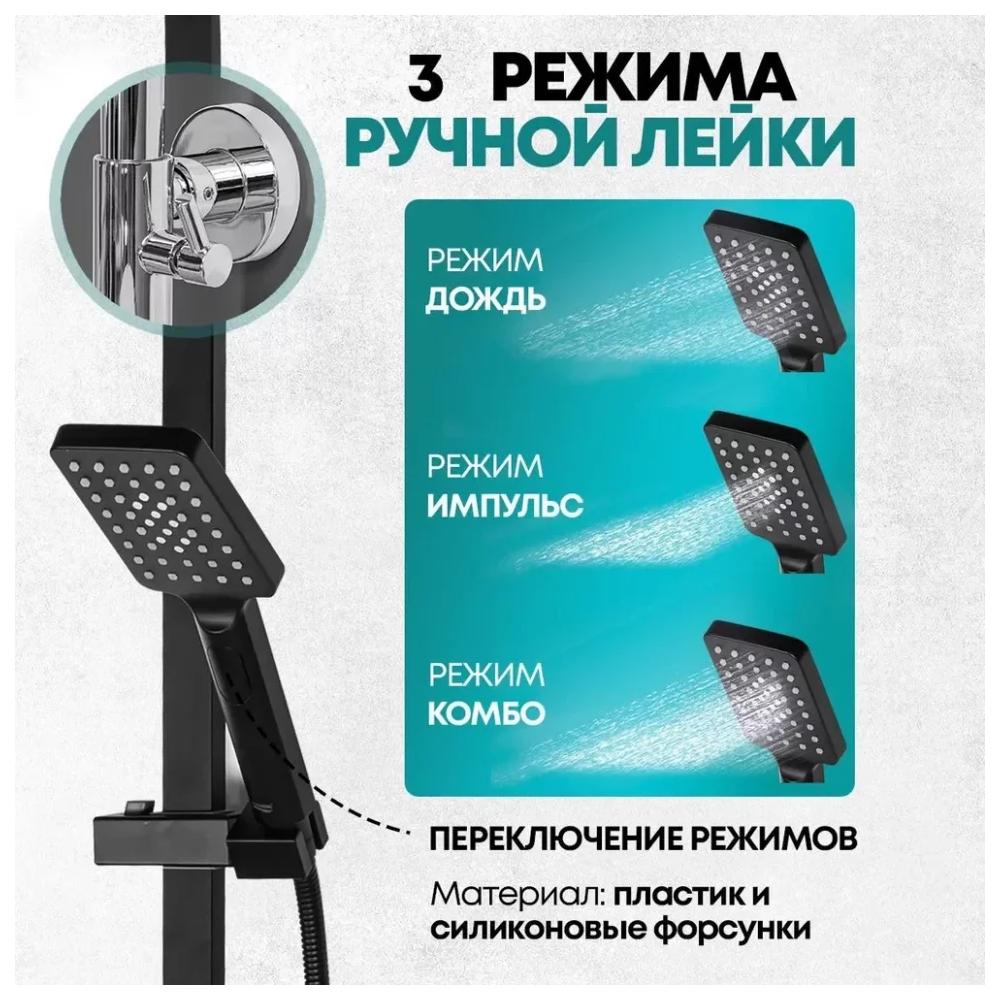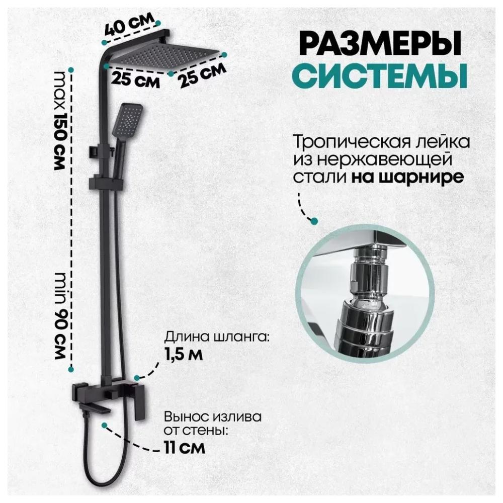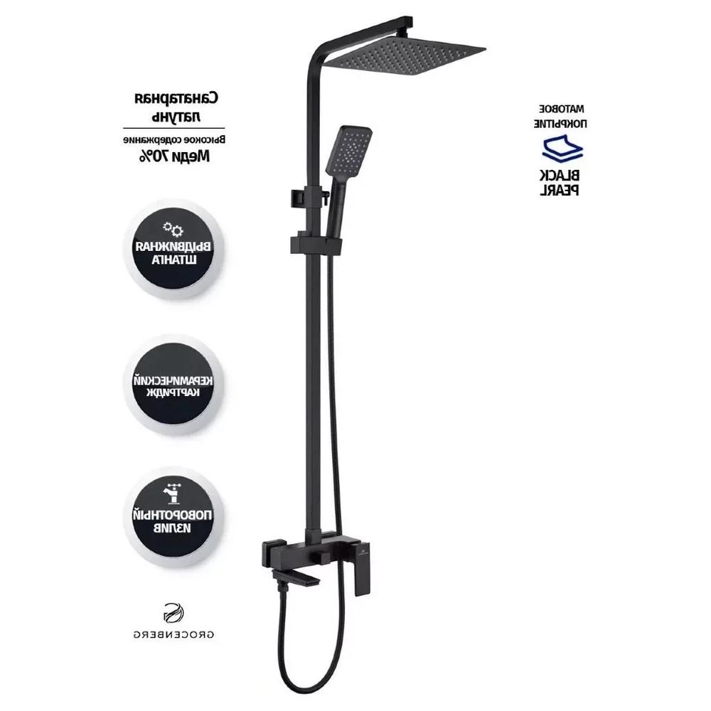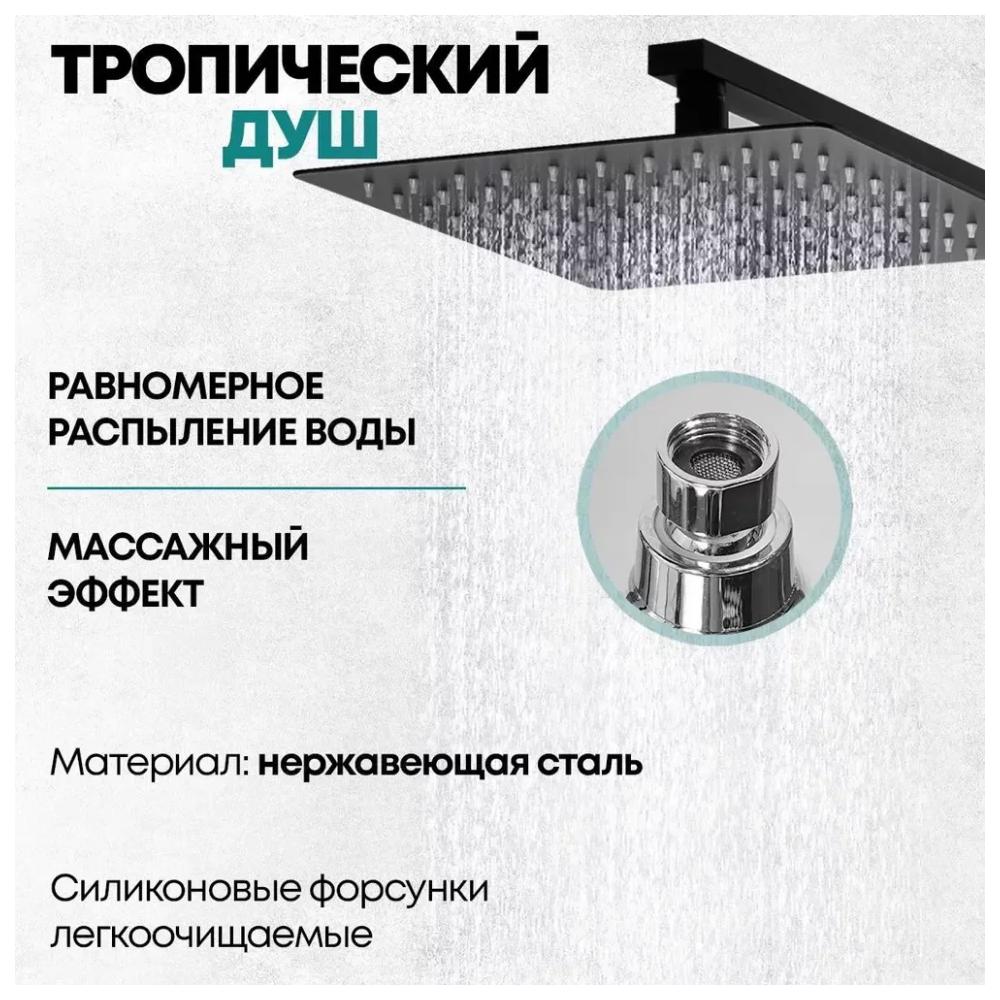 верхний душ, душевая штанга с держателем лейки, ручной душ, смеситель, шланг, эксцентрики, декоративные отражатели