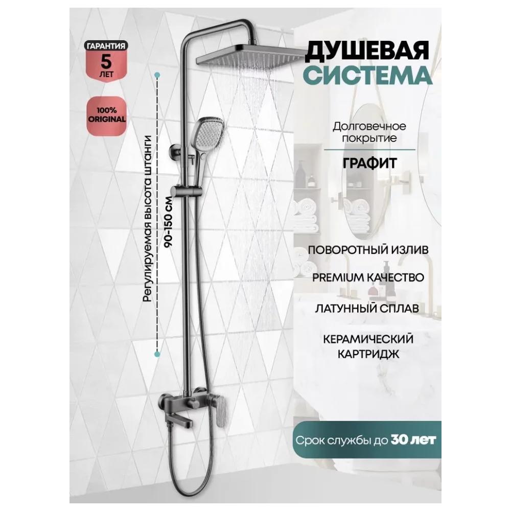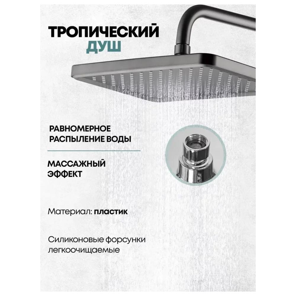 верхний душ, душевая штанга с держателем лейки, ручной душ, смеситель, шланг, эксцентрики, декоративные отражатели