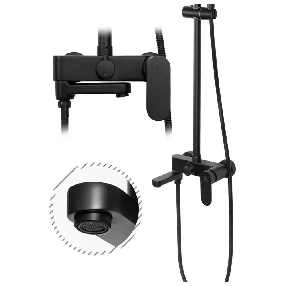 верхний душ, душевая штанга с держателем лейки, ручной душ, смеситель, шланг, эксцентрики, декоративные отражатели