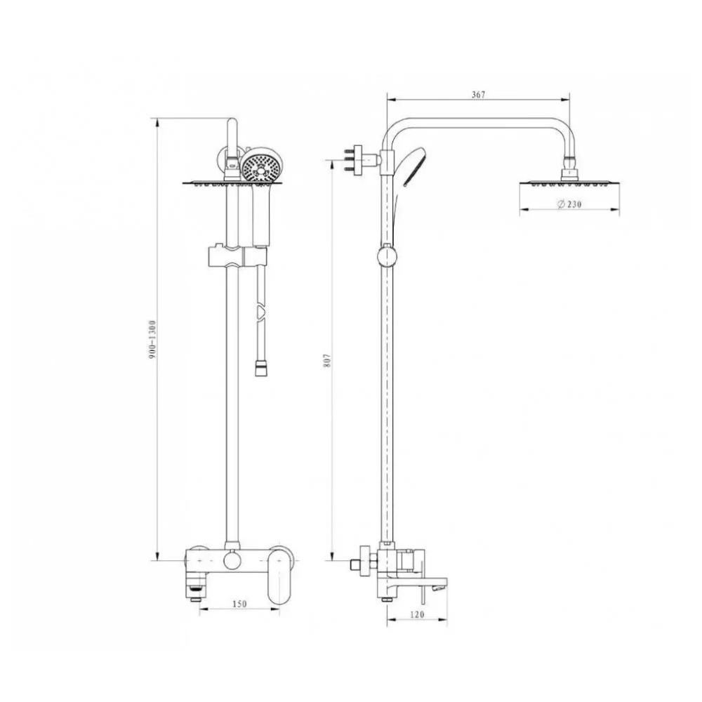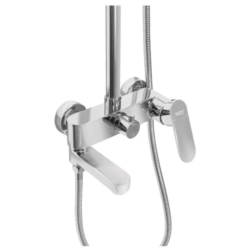 верхний душ, душевая штанга с держателем лейки, ручной душ, смеситель, шланг, эксцентрики, декоративные отражатели
