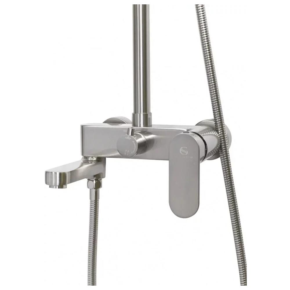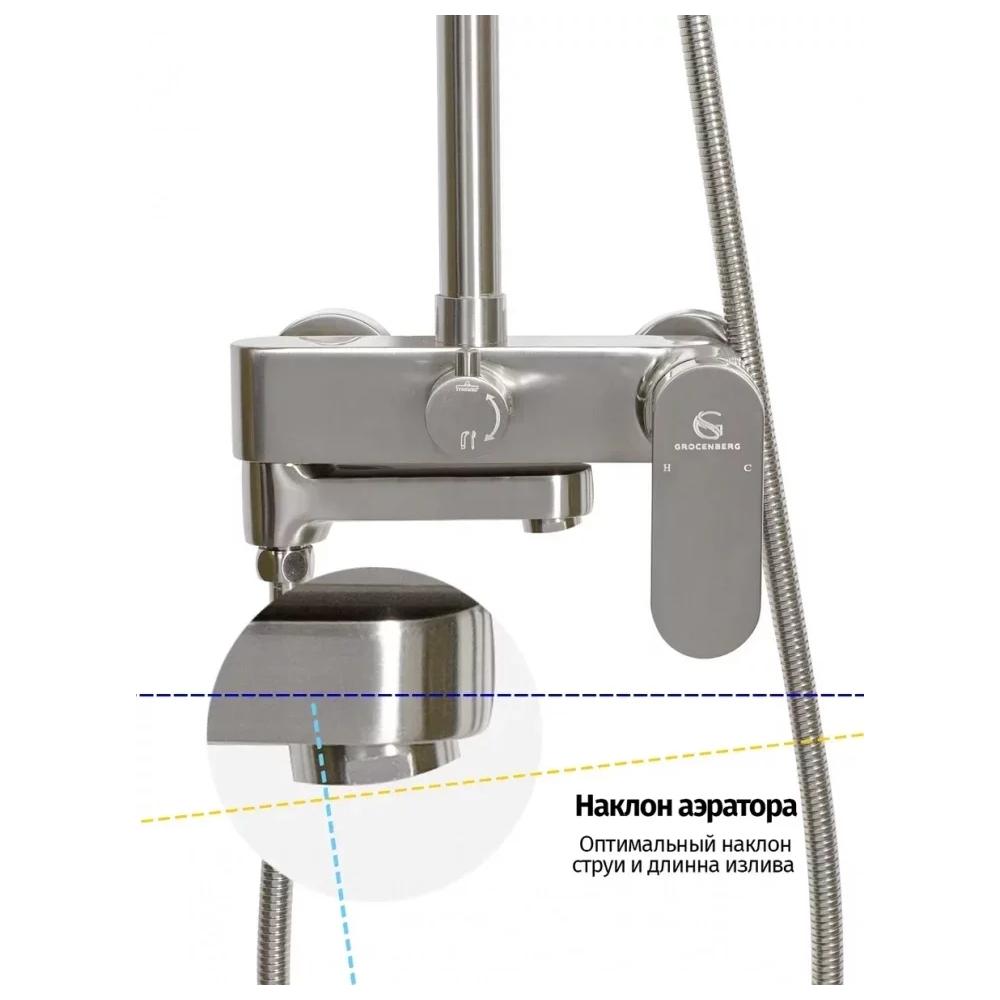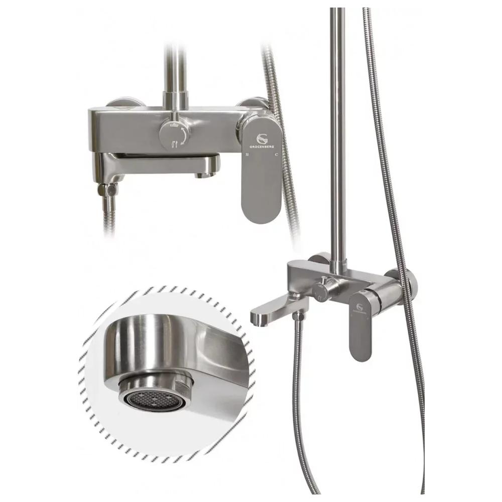 верхний душ, душевая штанга с держателем лейки, ручной душ, смеситель, шланг, эксцентрики, декоративные отражатели