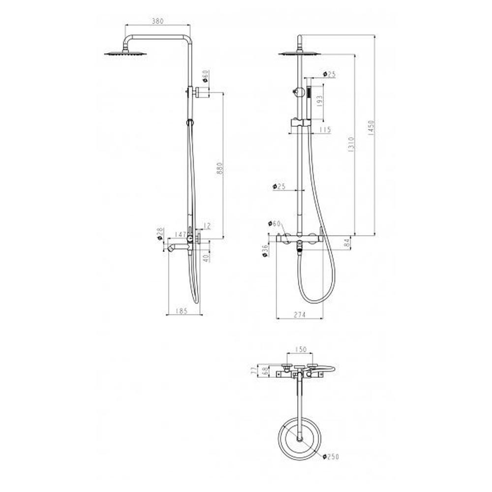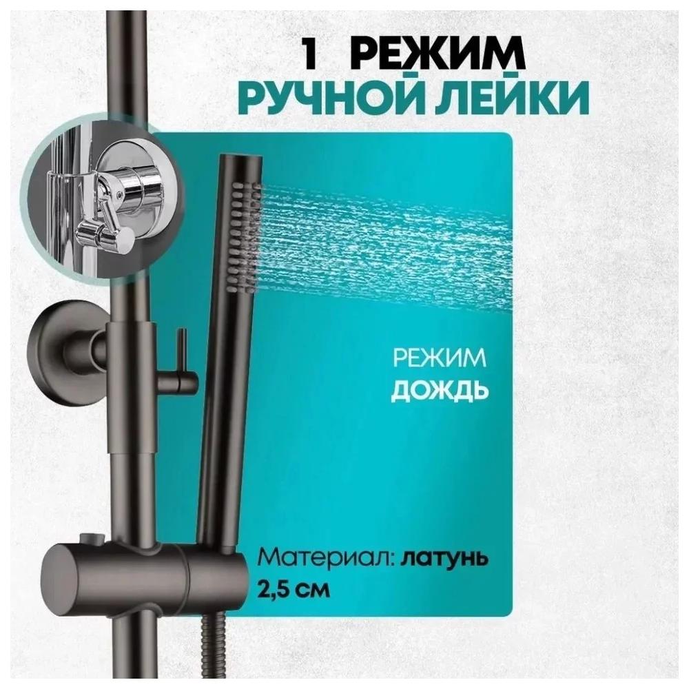 верхний душ, душевая штанга с держателем лейки, ручной душ, смеситель, шланг, эксцентрики, декоративные отражатели