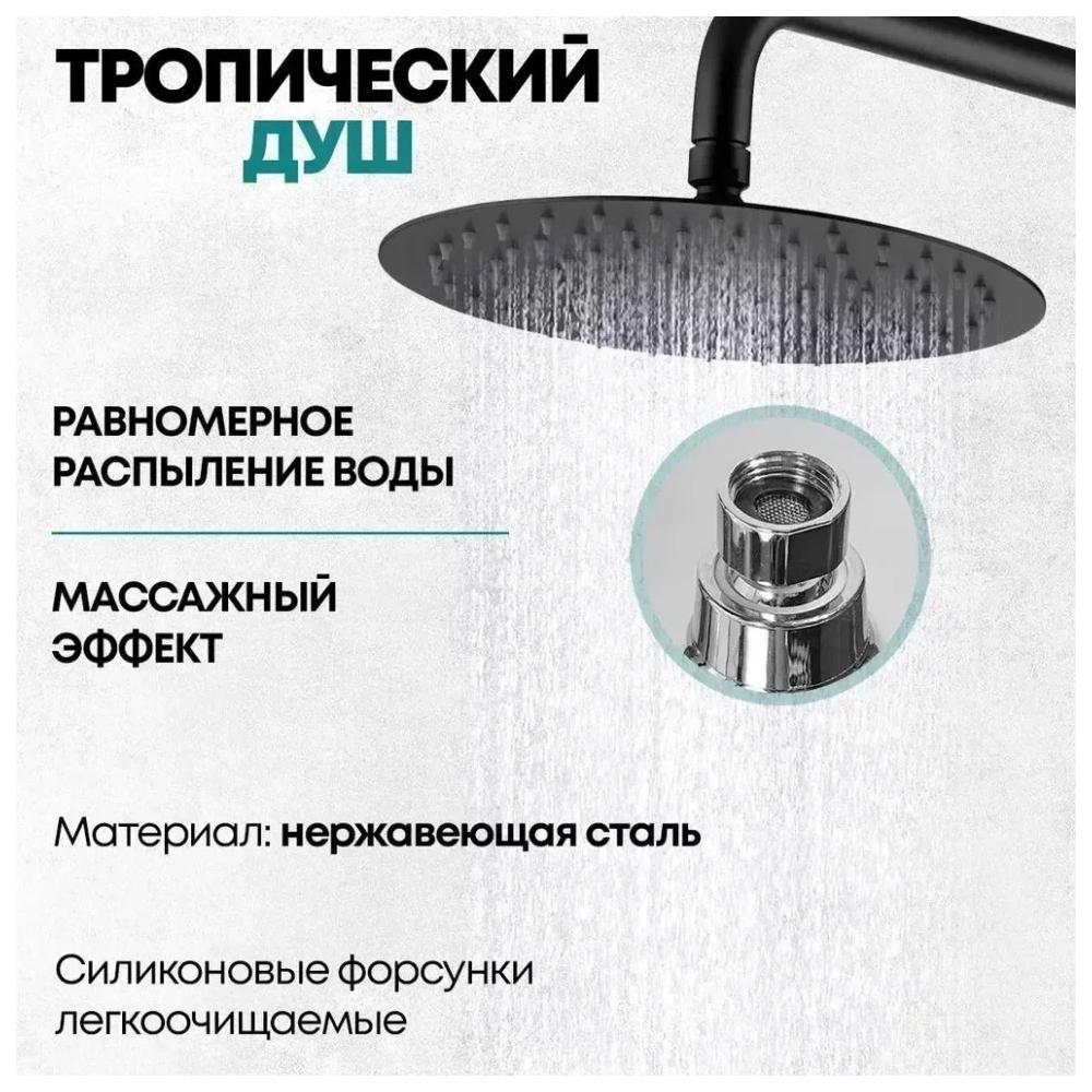 верхний душ, душевая штанга с держателем лейки, ручной душ, смеситель, шланг, эксцентрики, декоративные отражатели