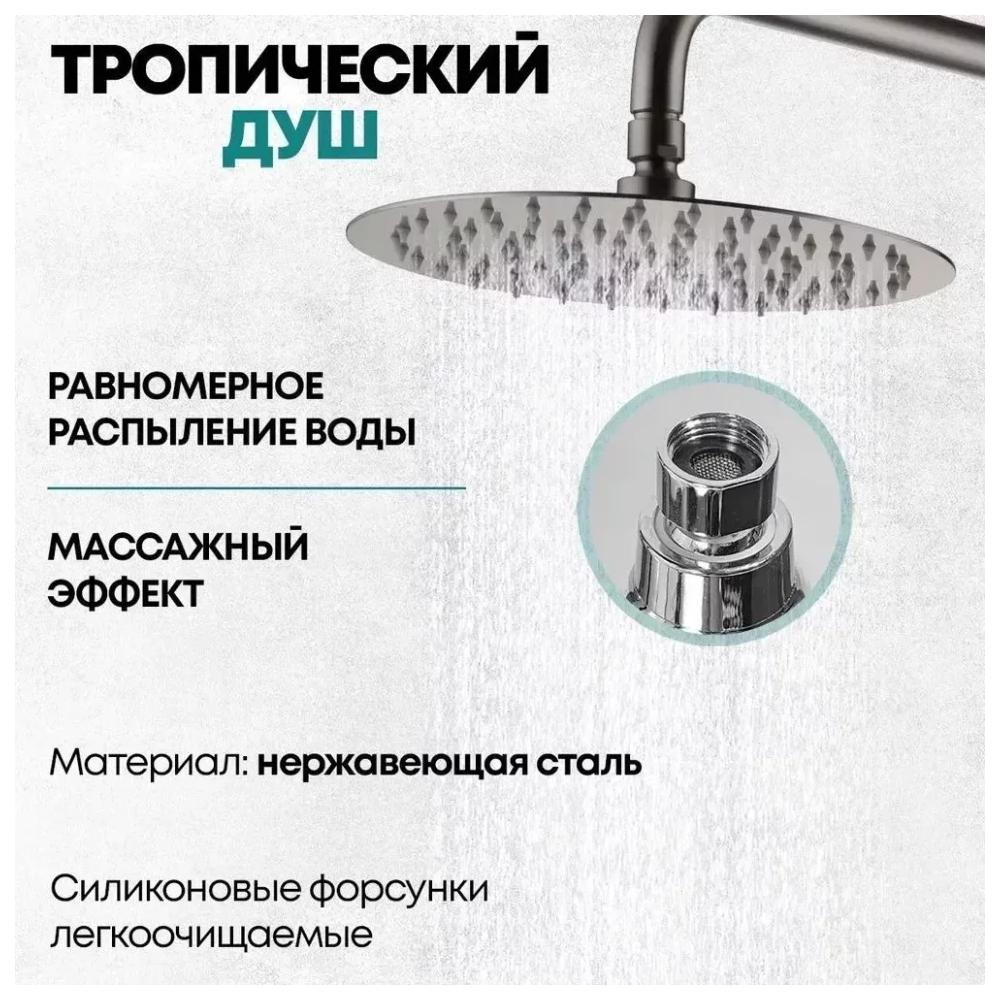 верхний душ, душевая штанга с держателем лейки, ручной душ, смеситель, шланг, эксцентрики, декоративные отражатели