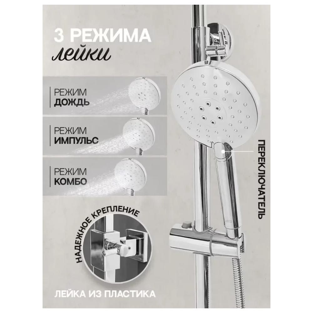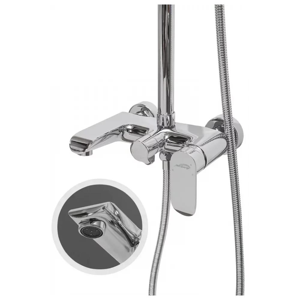 верхний душ, душевая штанга с держателем лейки, ручной душ, смеситель, шланг, эксцентрики, декоративные отражатели
