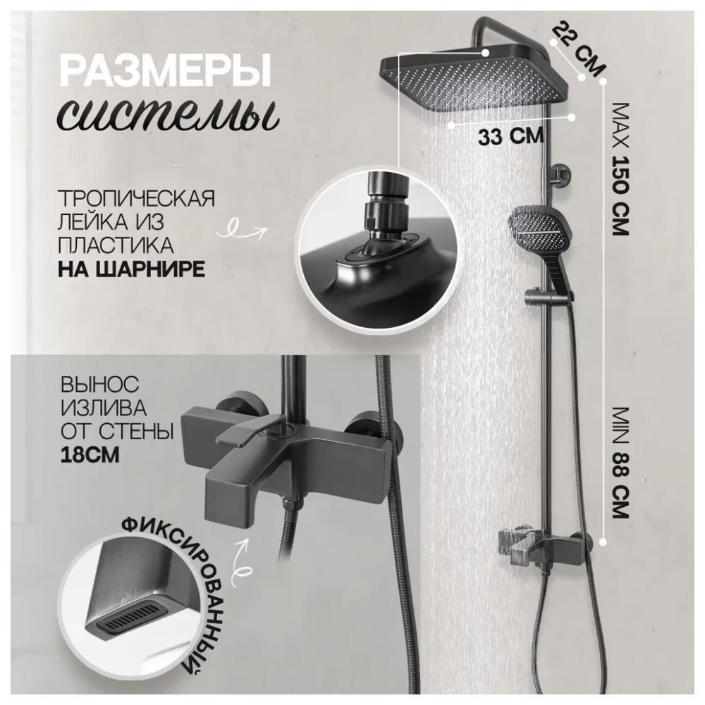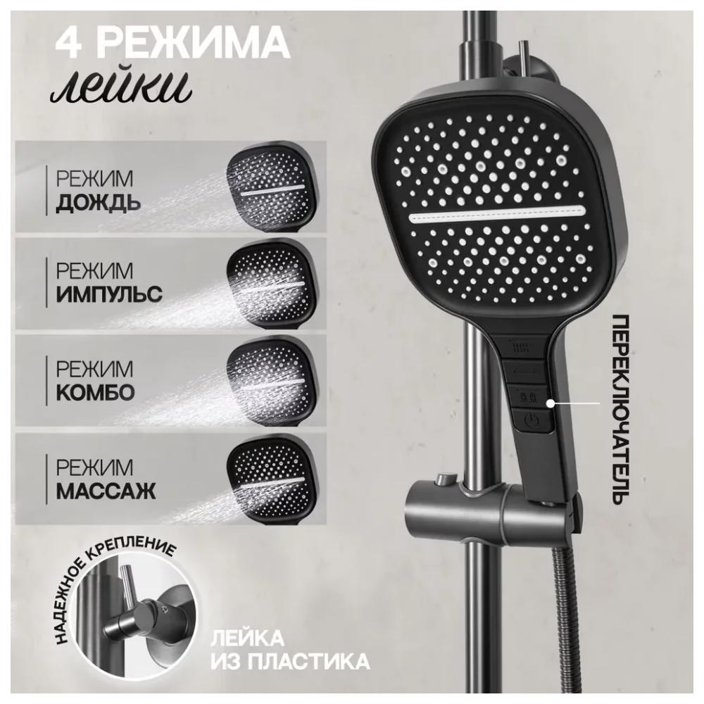 верхний душ, душевая штанга с держателем лейки, ручной душ, смеситель, шланг, эксцентрики, декоративные отражатели