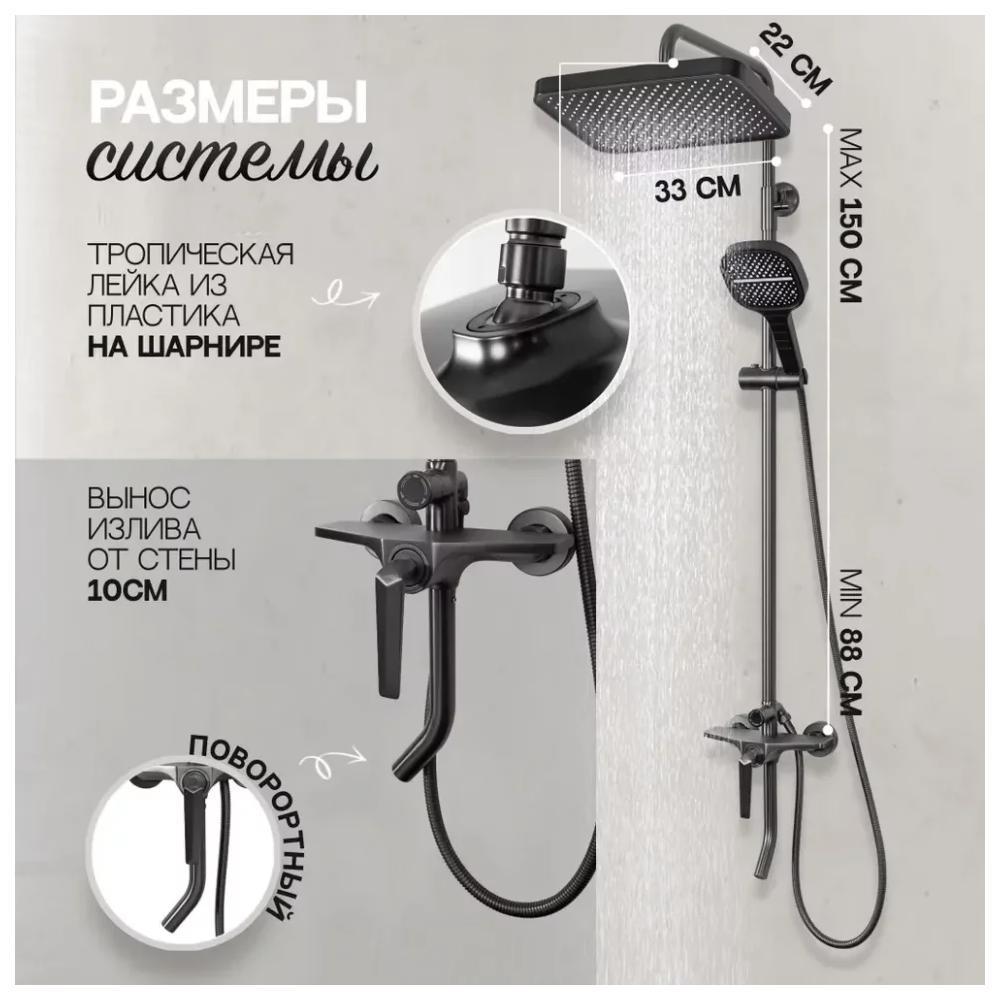 верхний душ, душевая штанга с держателем лейки, ручной душ, смеситель, шланг, эксцентрики, декоративные отражатели