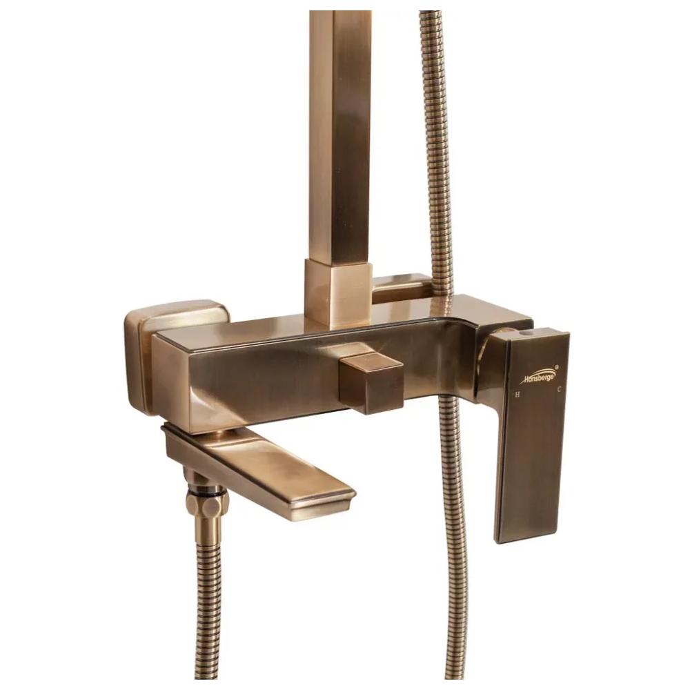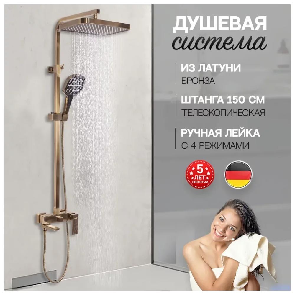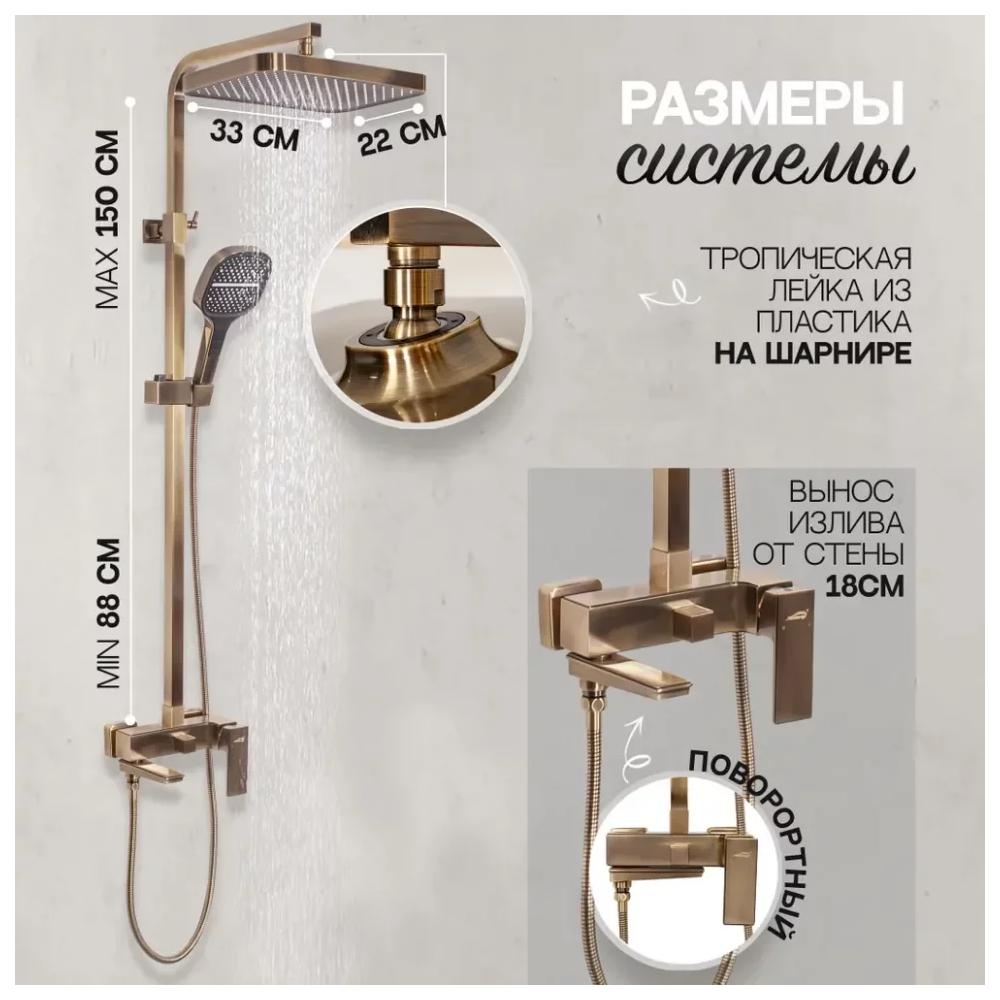 верхний душ, душевая штанга с держателем лейки, ручной душ, смеситель, шланг, эксцентрики, декоративные отражатели