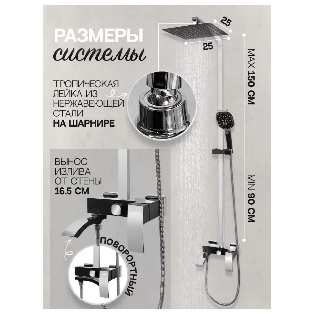 верхний душ, душевая штанга с держателем лейки, ручной душ, смеситель, шланг, эксцентрики, декоративные отражатели