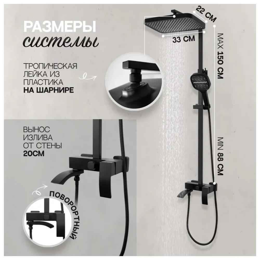 верхний душ, душевая штанга с держателем лейки, ручной душ, смеситель, шланг, эксцентрики, декоративные отражатели