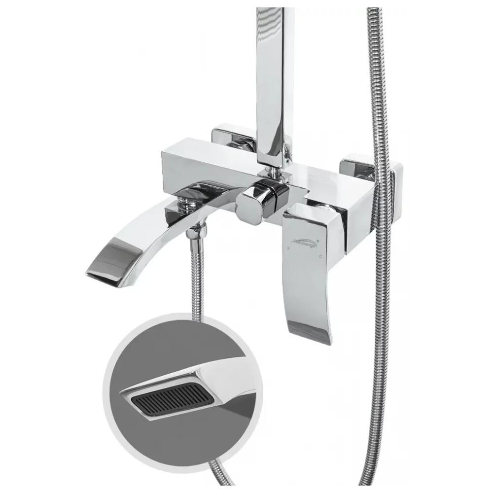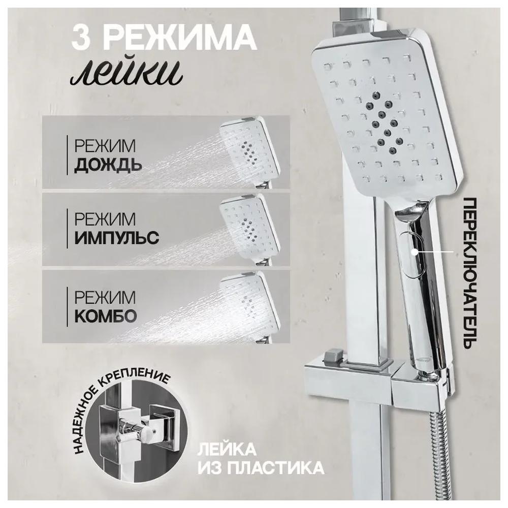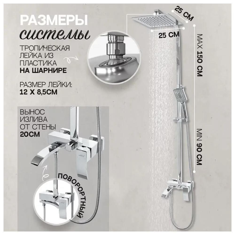 верхний душ, душевая штанга с держателем лейки, ручной душ, смеситель, шланг, эксцентрики, декоративные отражатели