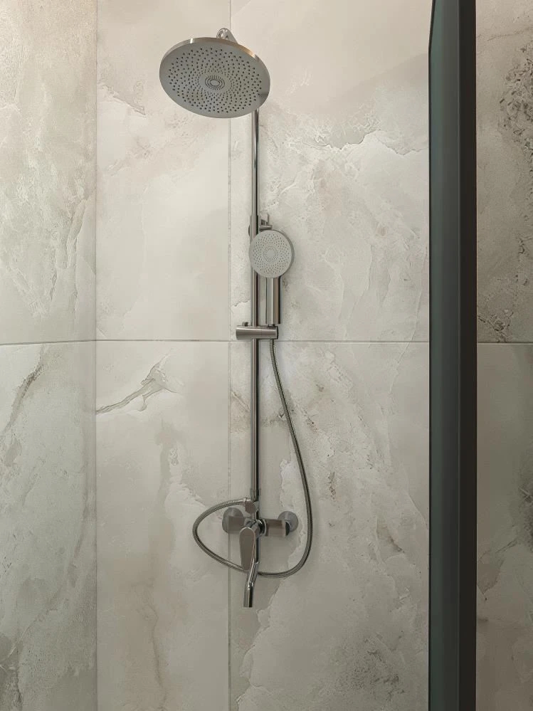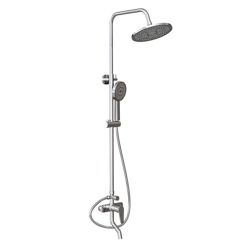 верхний душ, душевая штанга с держателем лейки, ручной душ, смеситель, шланг