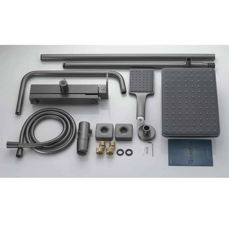 верхний душ, душевая штанга с держателем лейки, ручной душ, смеситель, шланг