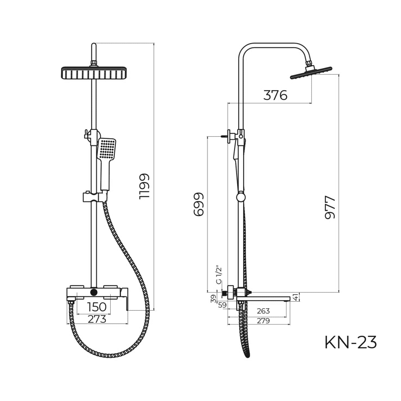 верхний душ, душевая штанга с держателем лейки, ручной душ, смеситель, шланг