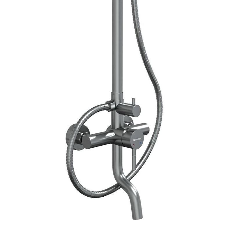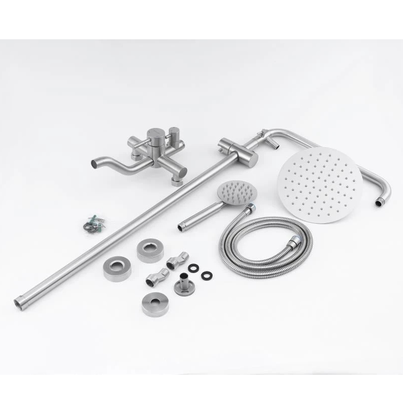 верхний душ, душевая штанга с держателем лейки, ручной душ, смеситель, шланг
