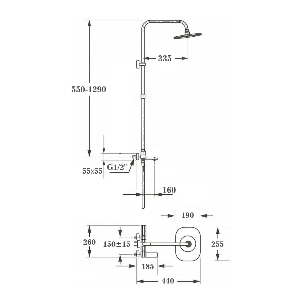 Размер верхнего душа, мм