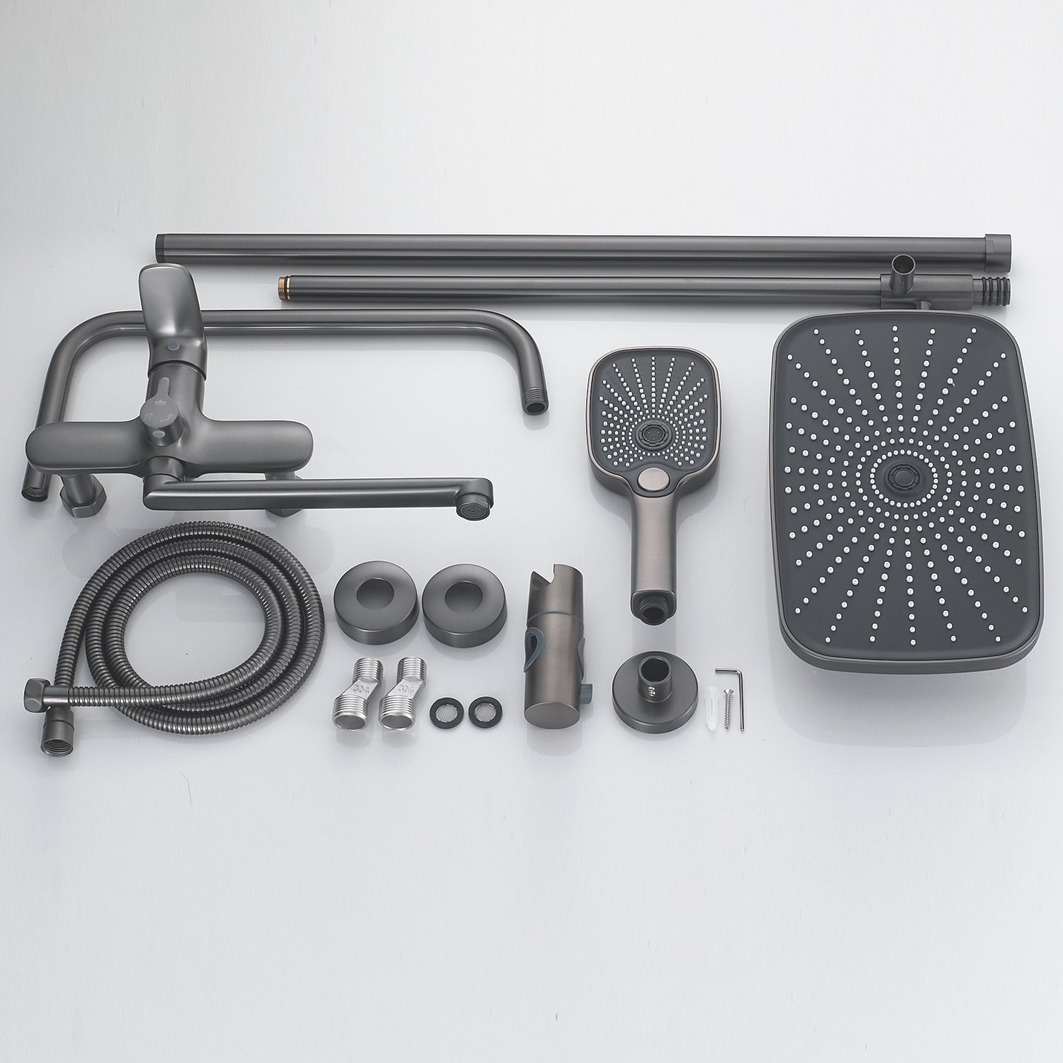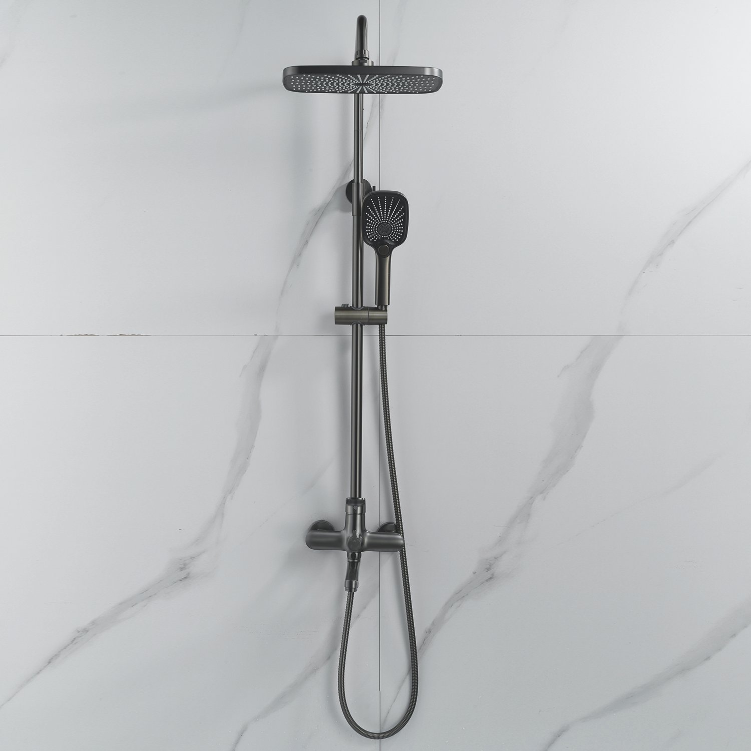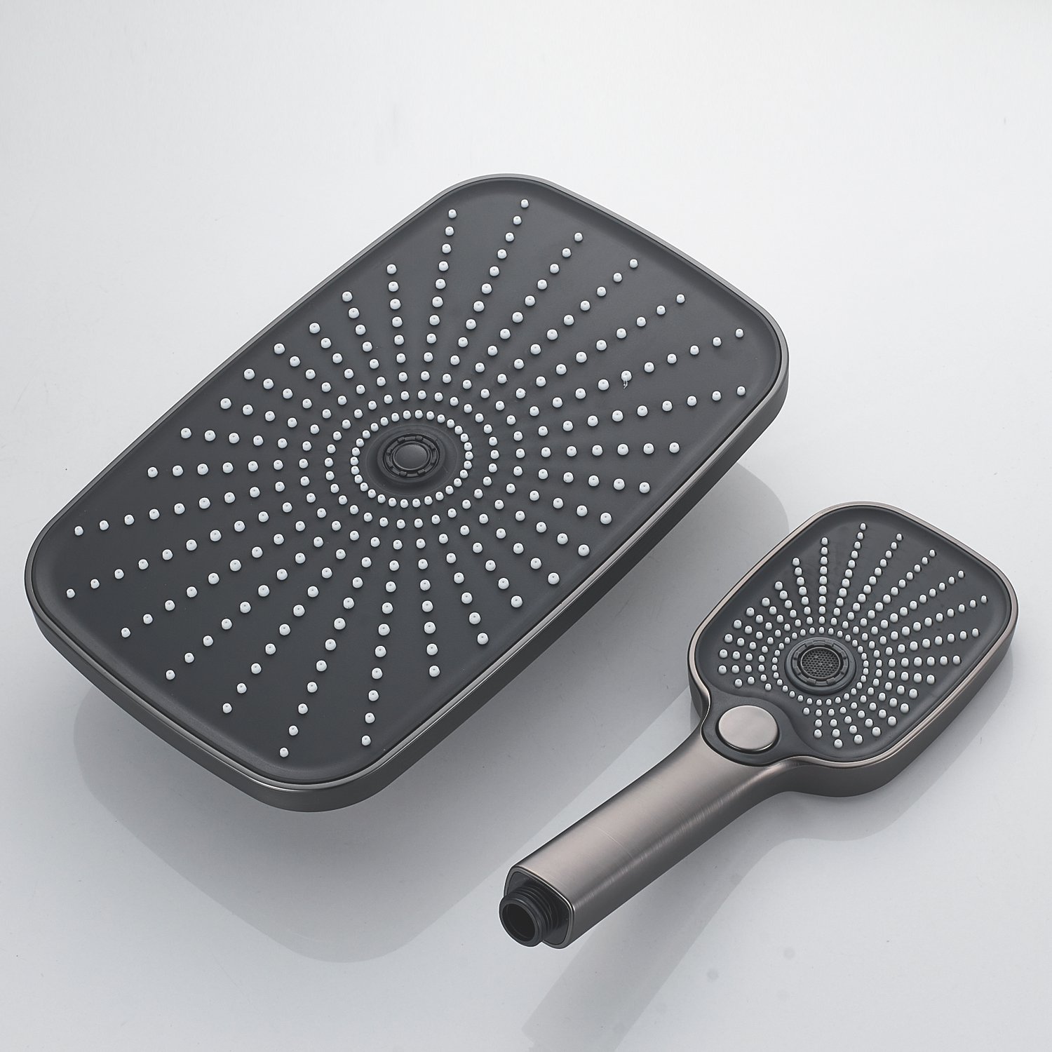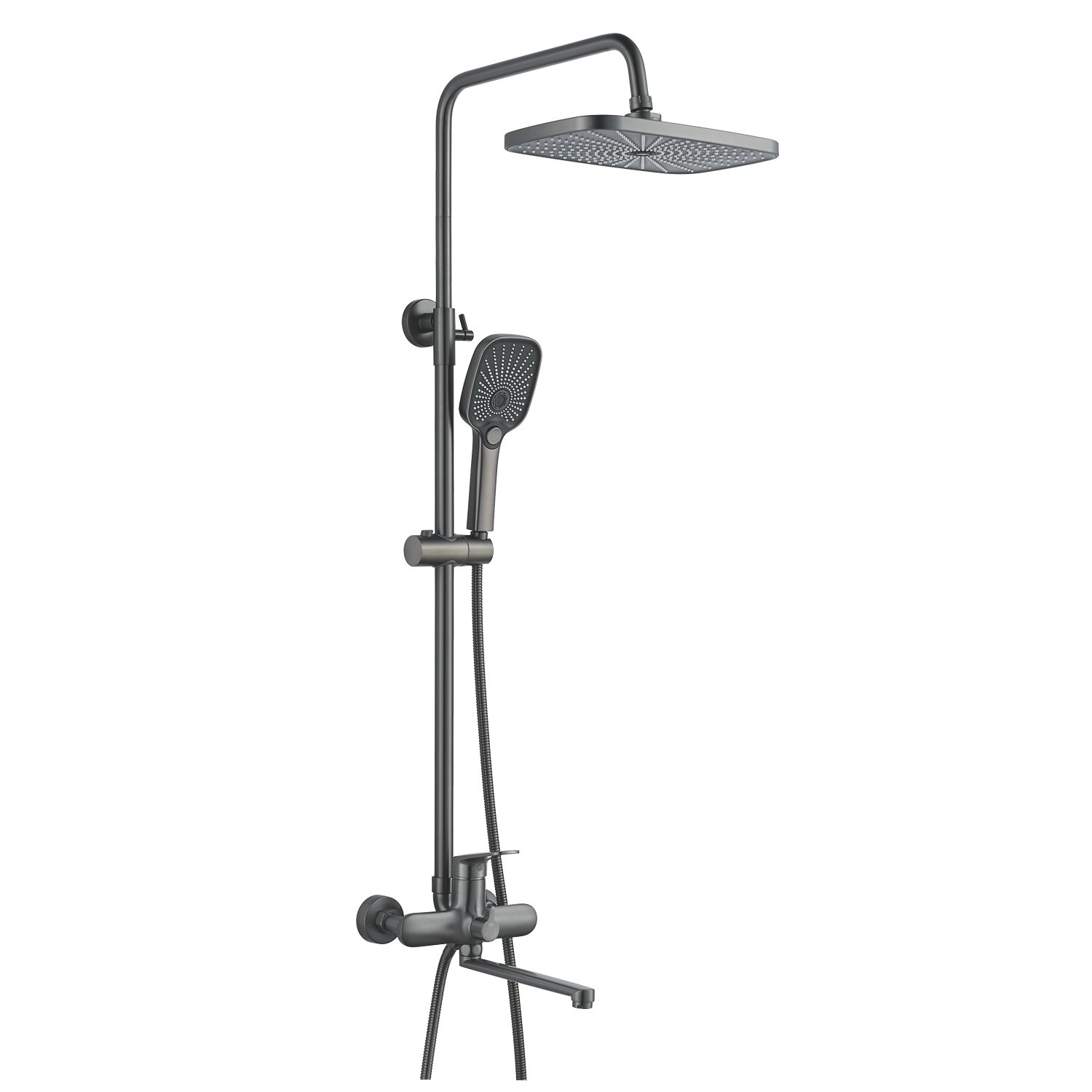 Душевая система Raffine F3685T в цвете "оружейная сталь", в дизайне которой преобладают плавные округлые формы - идеальное решение для вашей ванной комнаты. Изготовленная из прочной латуни, она гарантирует долговечность и надежность использования.