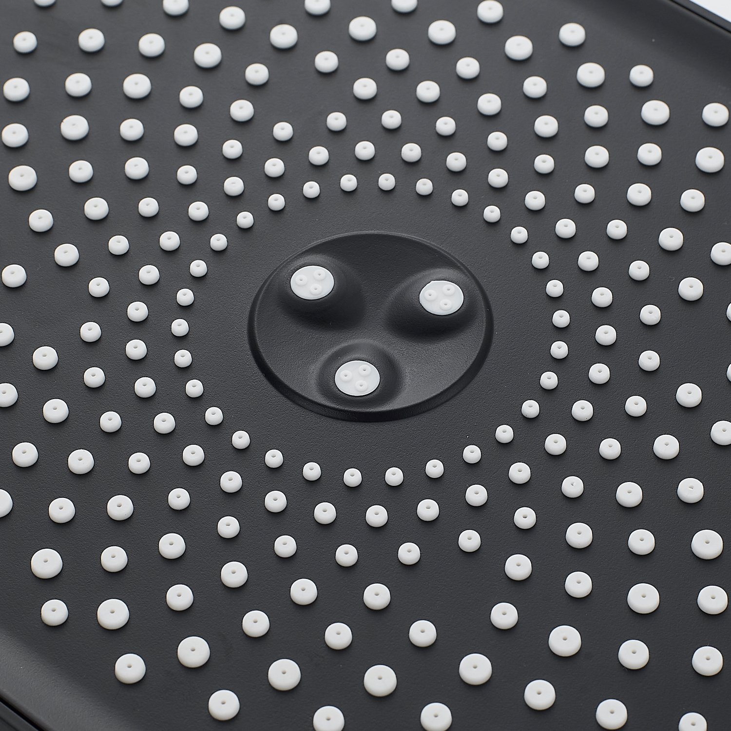 Верхний душ размером 290x195 мм из ABS-пластика легко регулируется по наклону благодаря встроенному шарниру. Он также оснащен самоочищающимися силиконовыми форсунками, которые защищают его от известкового налета, обеспечивая всегда чистый и сильный поток воды.