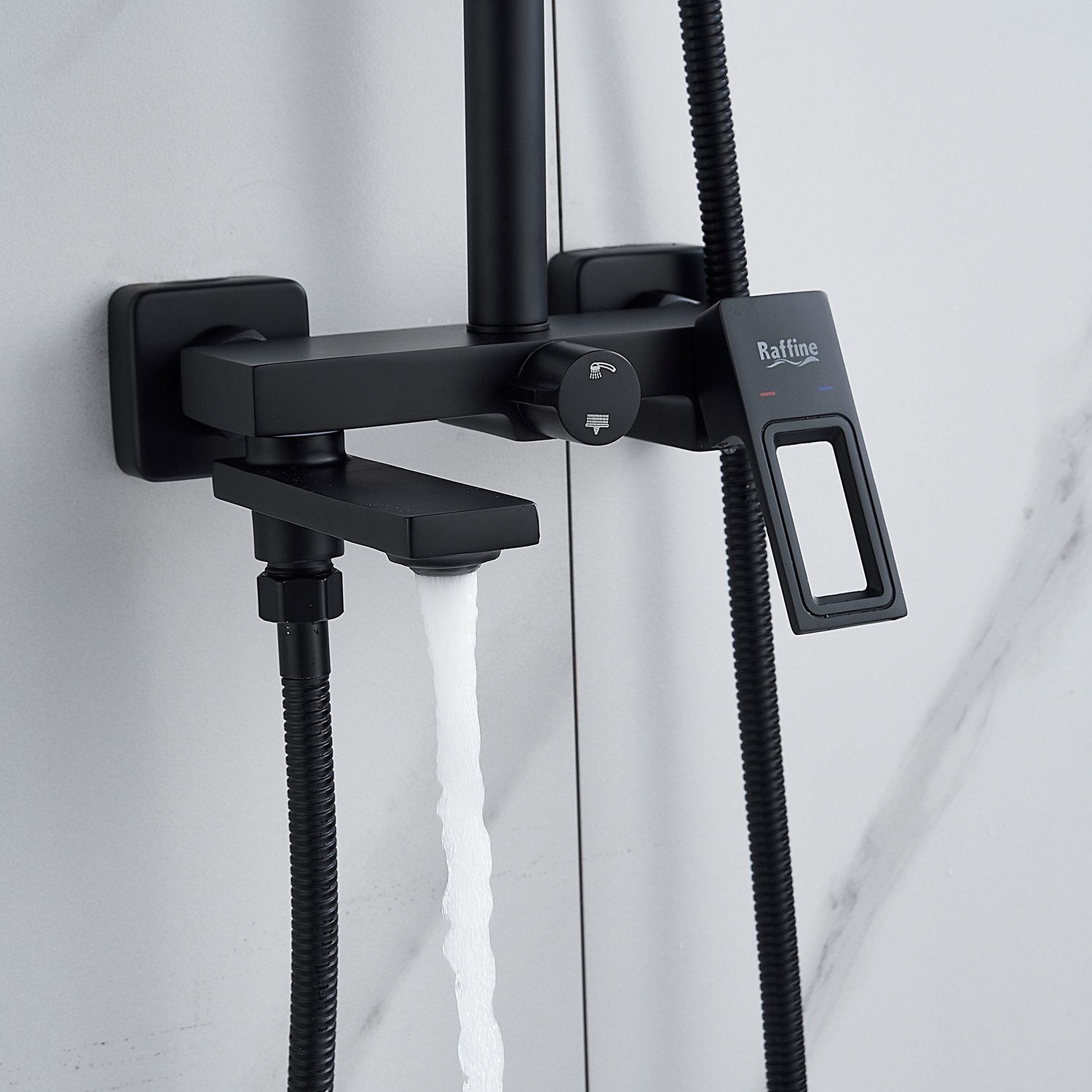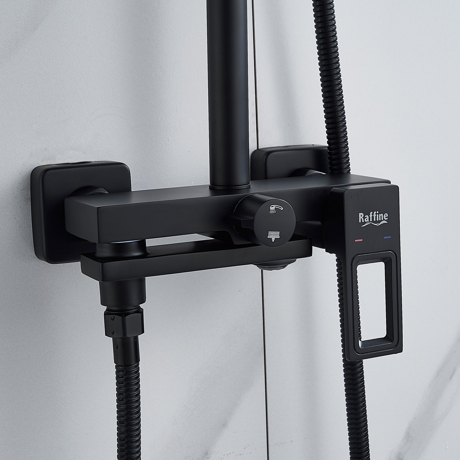 Душевая система Raffine F3696H в черном матовом цвете - идеальный выбор для вашей ванной комнаты! Изготовленная из высококачественной латуни, она обеспечивает прочность и долговечность использования.
