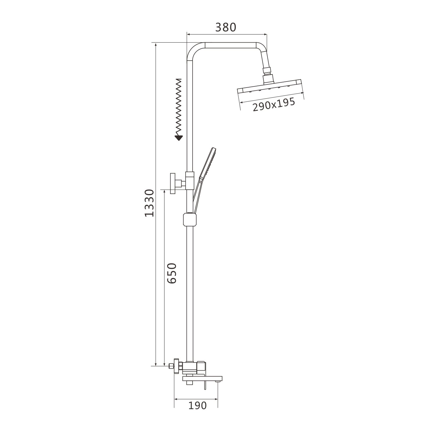 Душевая система также оснащена поворотным изливом для ванны, который при необходимости можно сложить для экономии места.