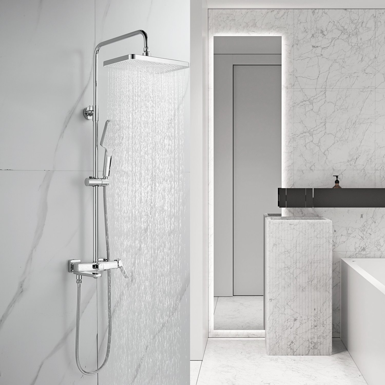 Душевая система Raffine F3699 в цвете хром - идеальный выбор для вашей ванной комнаты! Изготовленная из высококачественной латуни, она обеспечивает прочность и долговечность использования.