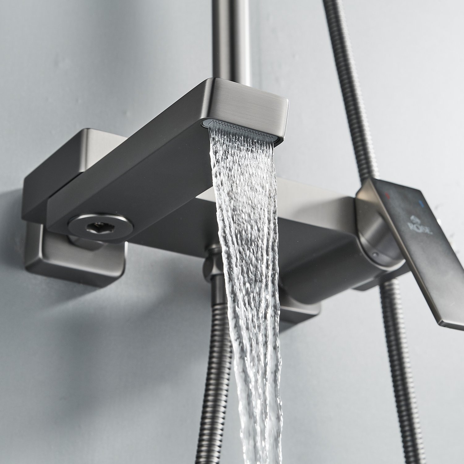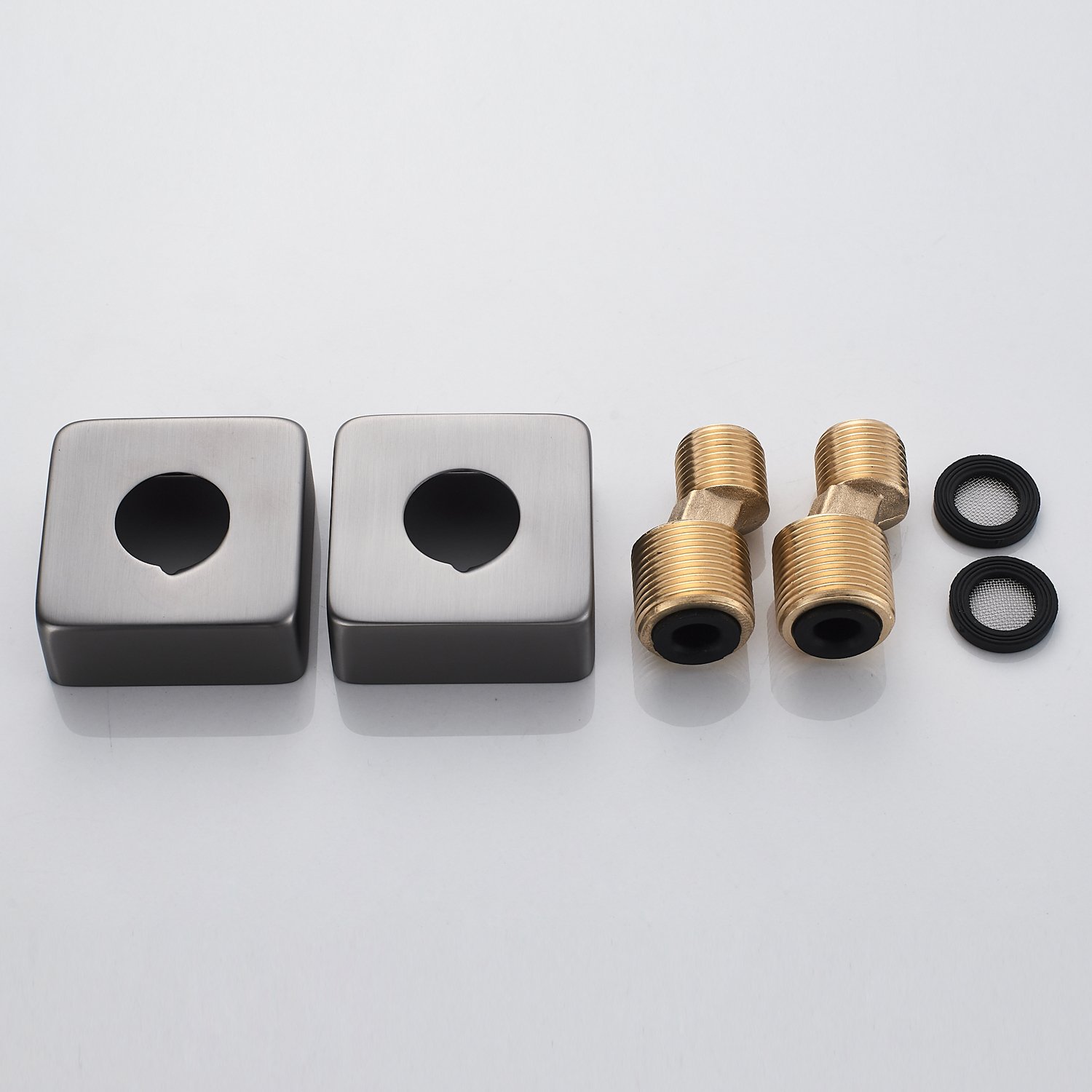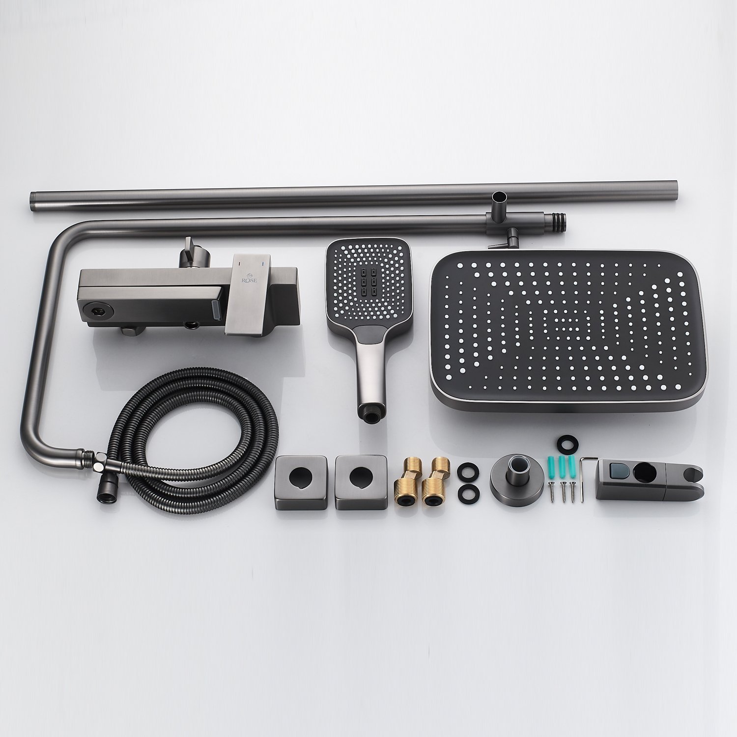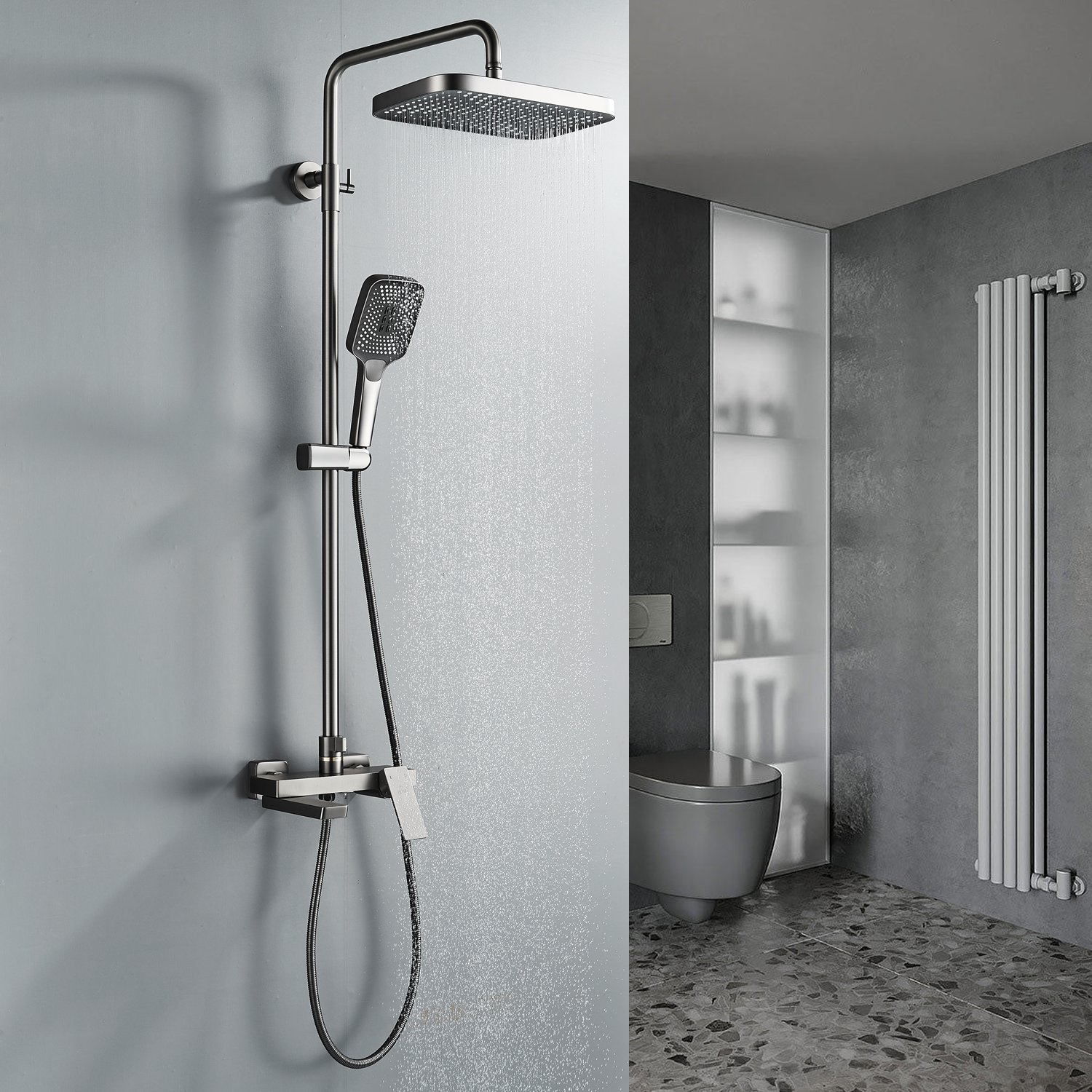 смеситель, верхний душ, штанга с держателем душевой лейки, душевая лейка, шланг, эксцентрики