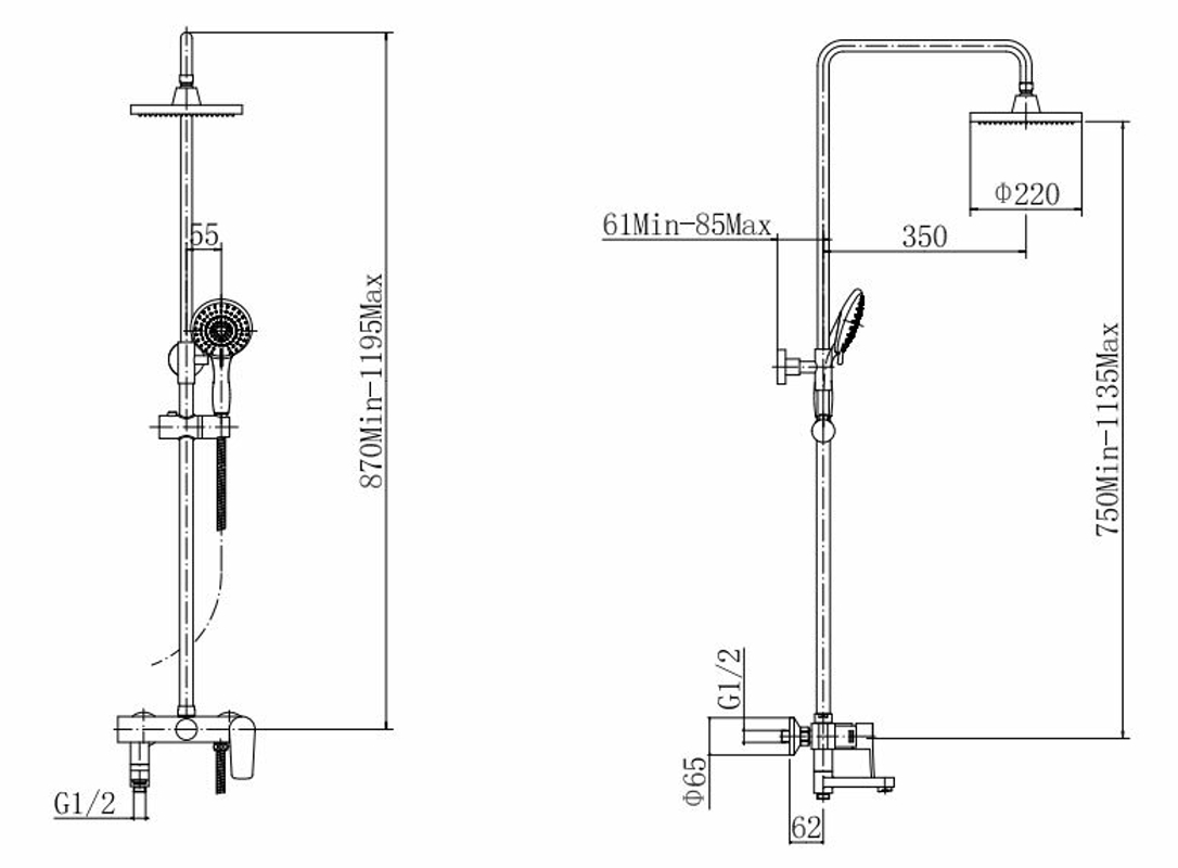 Размер верхнего душа, мм