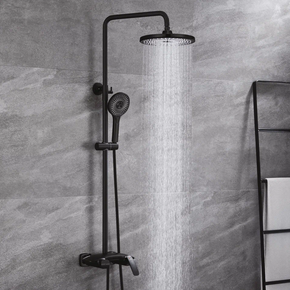 смеситель, верхний душ, штанга с держателем душевой лейки, душевая лейка, шланг, эксцентрики