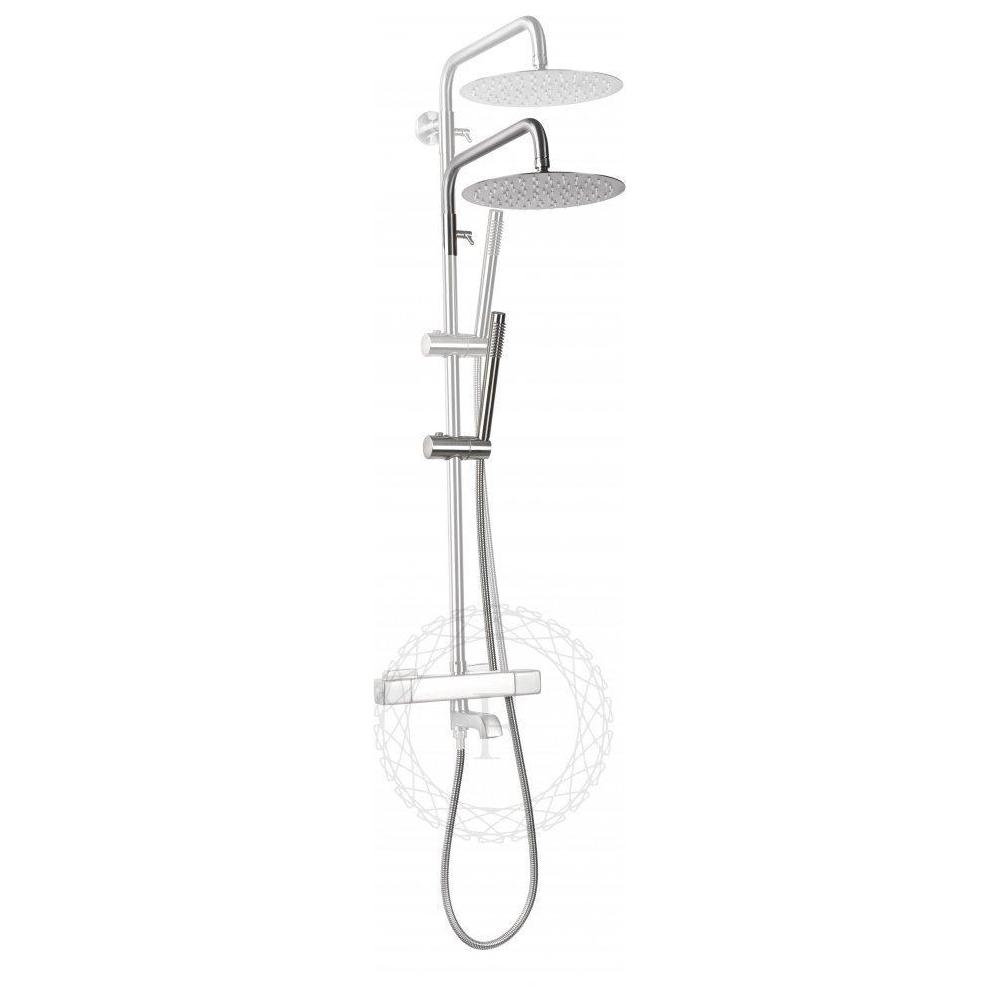 верхний душ, душевая штанга с держателем лейки, ручной душ, смеситель, шланг, эксцентрики, декоративные отражатели