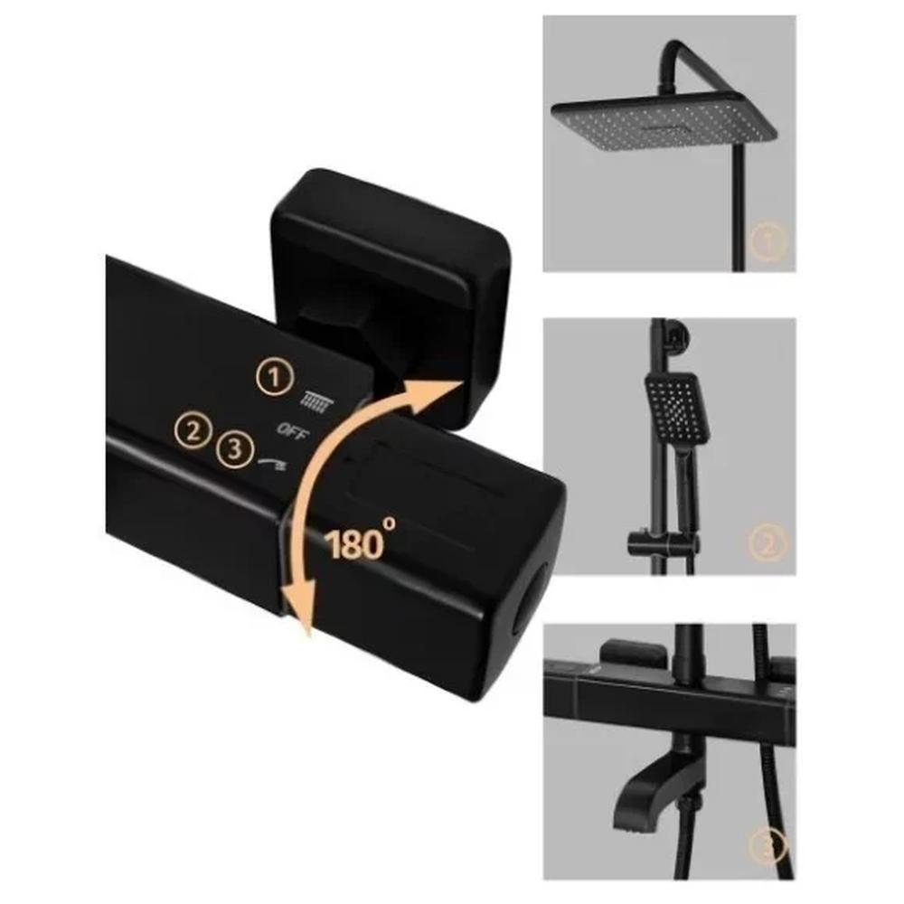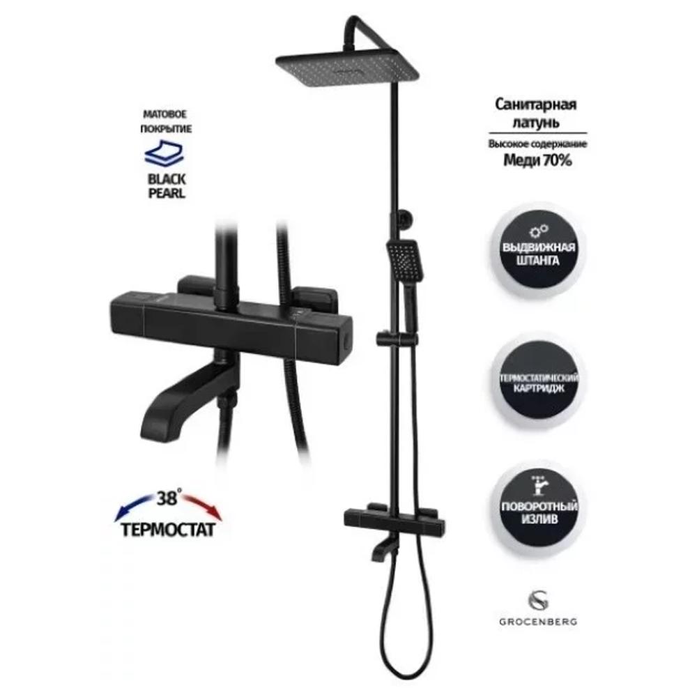 верхний душ, душевая штанга с держателем лейки, ручной душ, смеситель, шланг, эксцентрики, декоративные отражатели