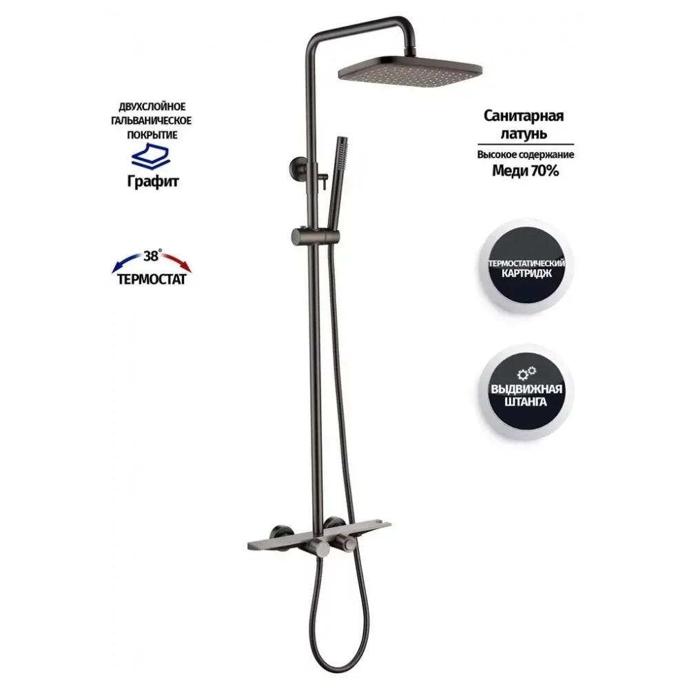 верхний душ, душевая штанга с держателем лейки, ручной душ, смеситель, шланг, эксцентрики, декоративные отражатели