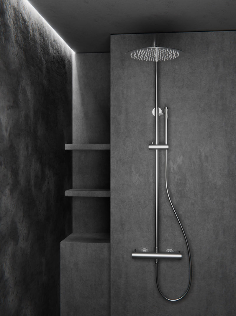 верхний душ, душевая штанга с держателем лейки, ручной душ, смеситель, шланг