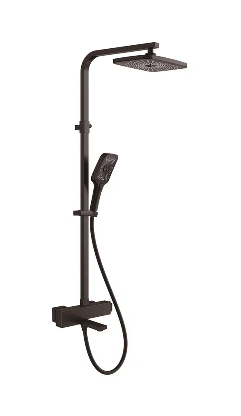 смеситель, верхний душ, штанга с держателем душевой лейки, душевая лейка, шланг, эксцентрики