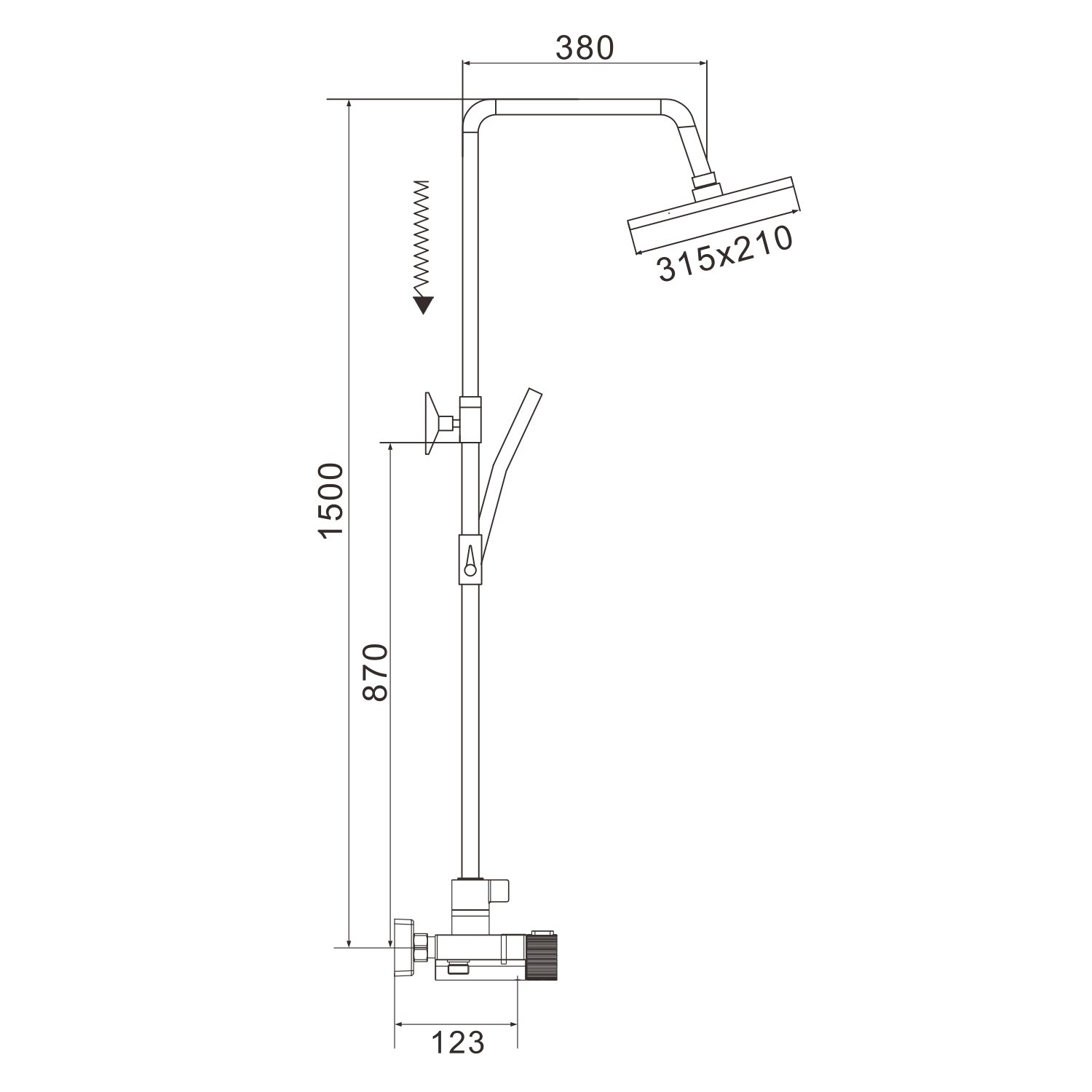 смеситель, верхний душ, штанга с держателем душевой лейки, душевая лейка, шланг, эксцентрики