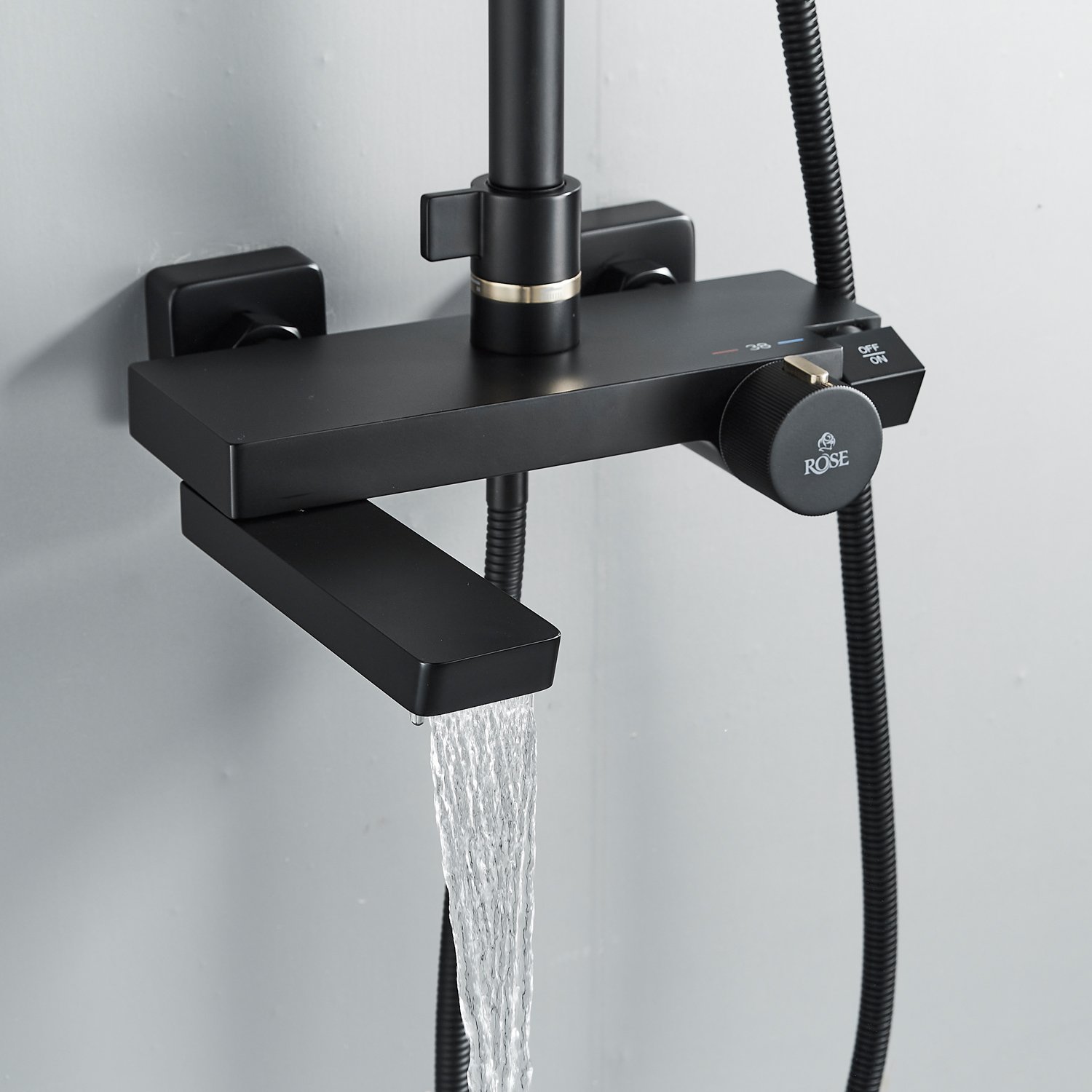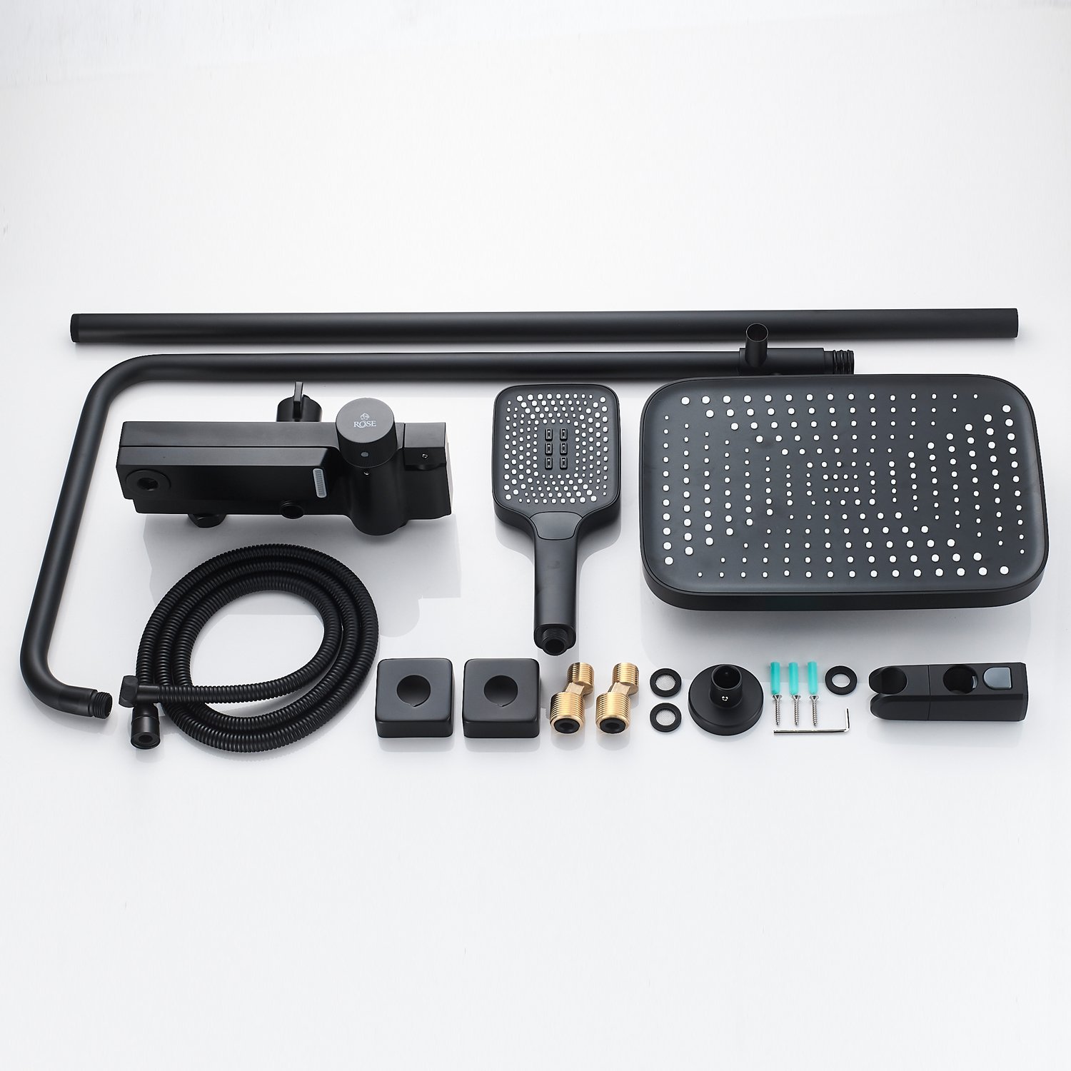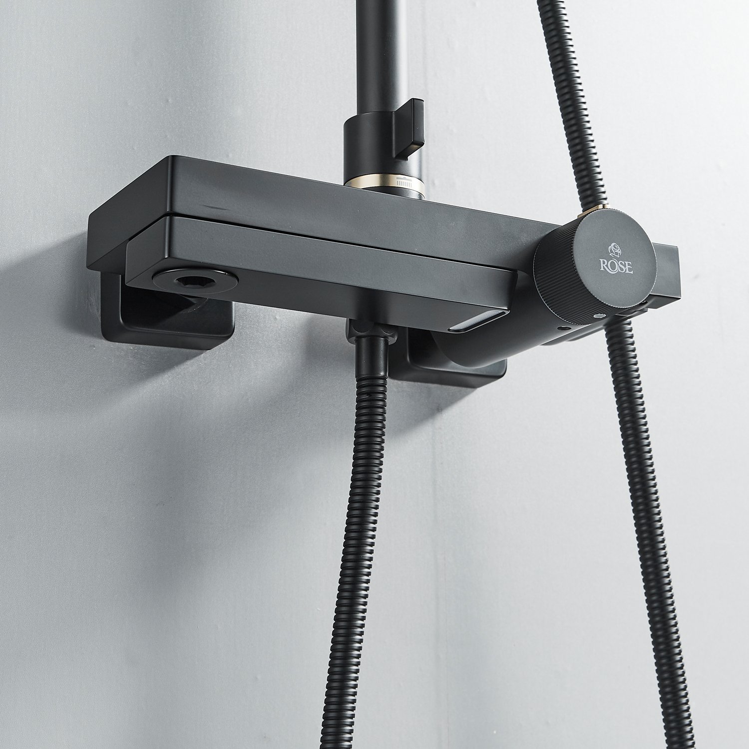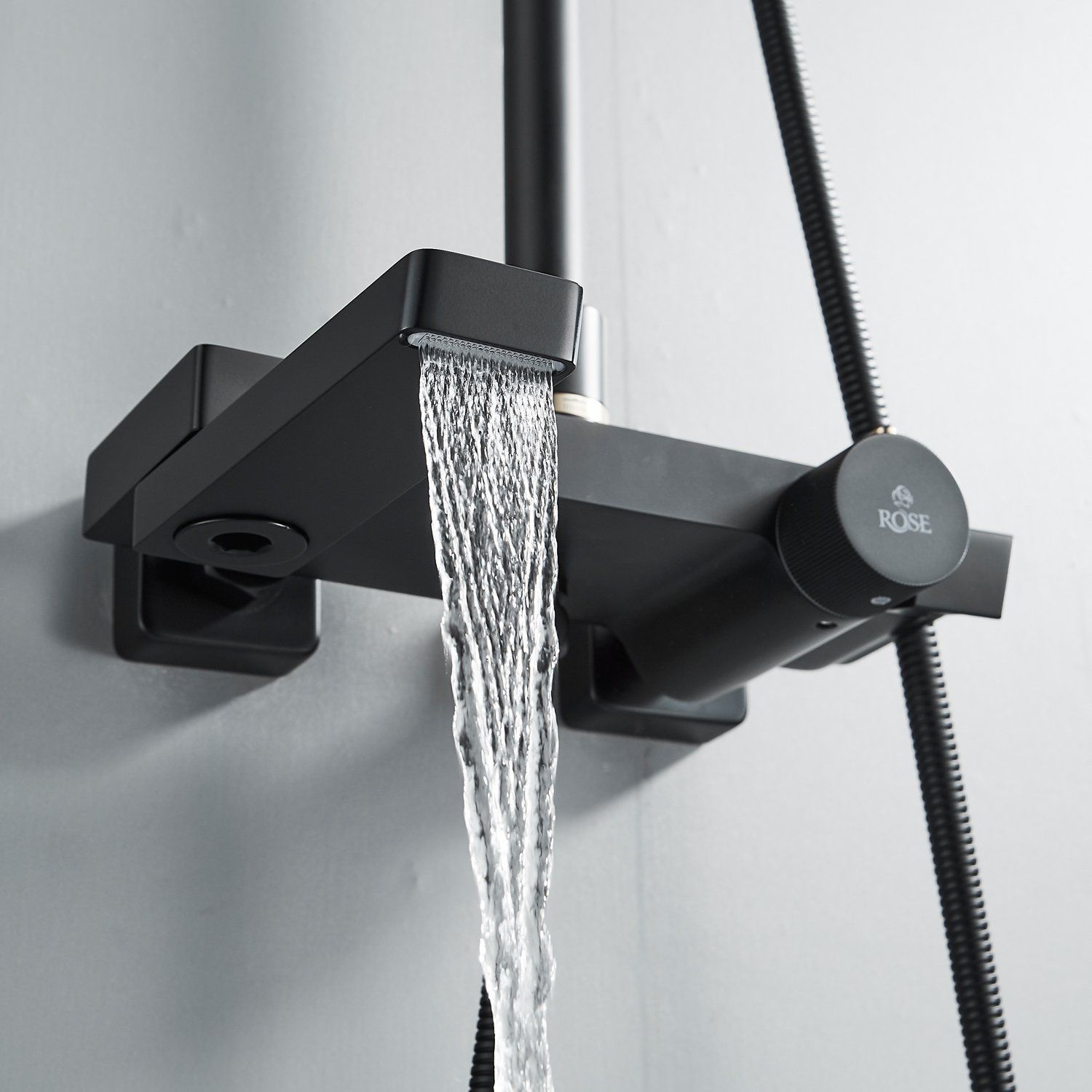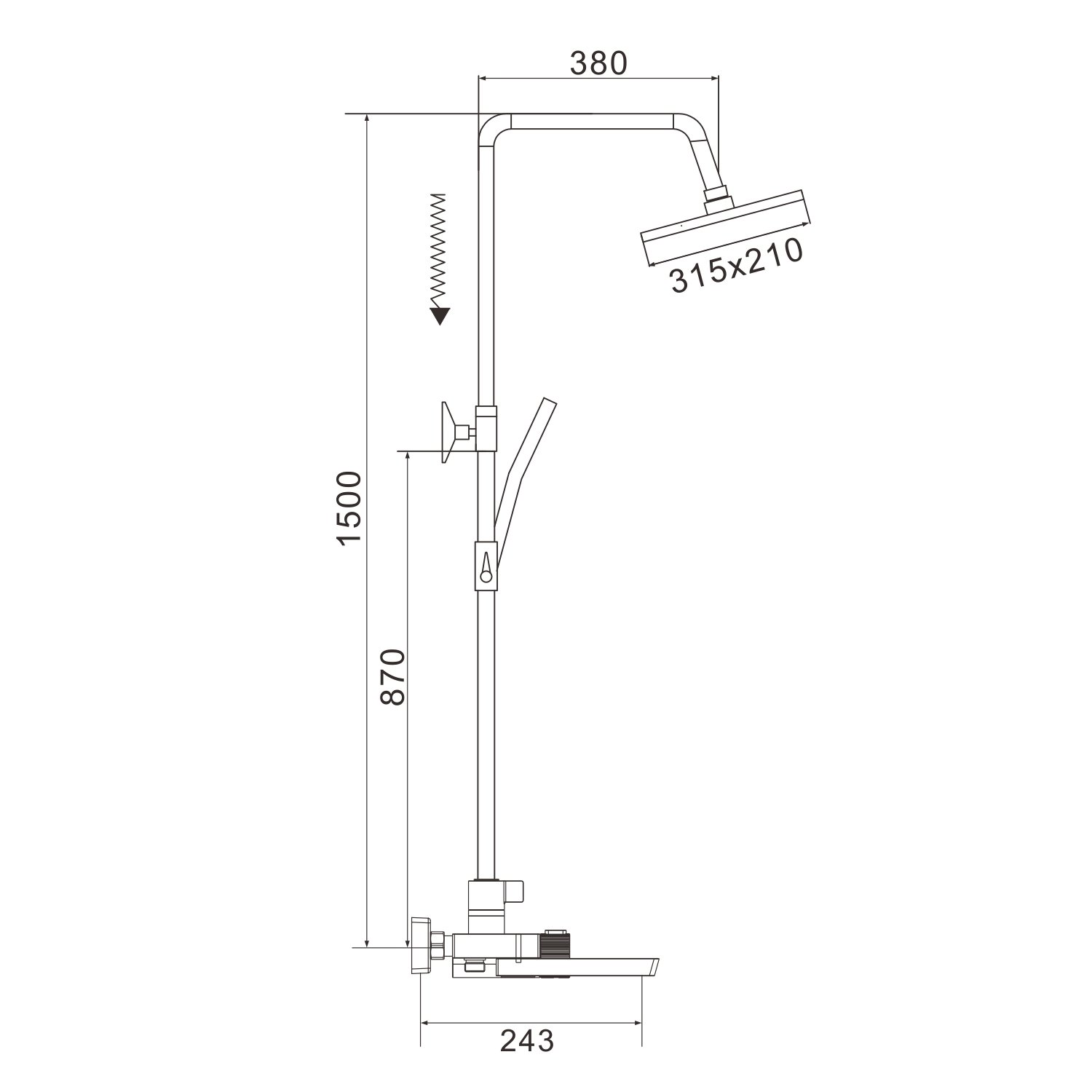 смеситель, верхний душ, штанга с держателем душевой лейки, душевая лейка, шланг, эксцентрики