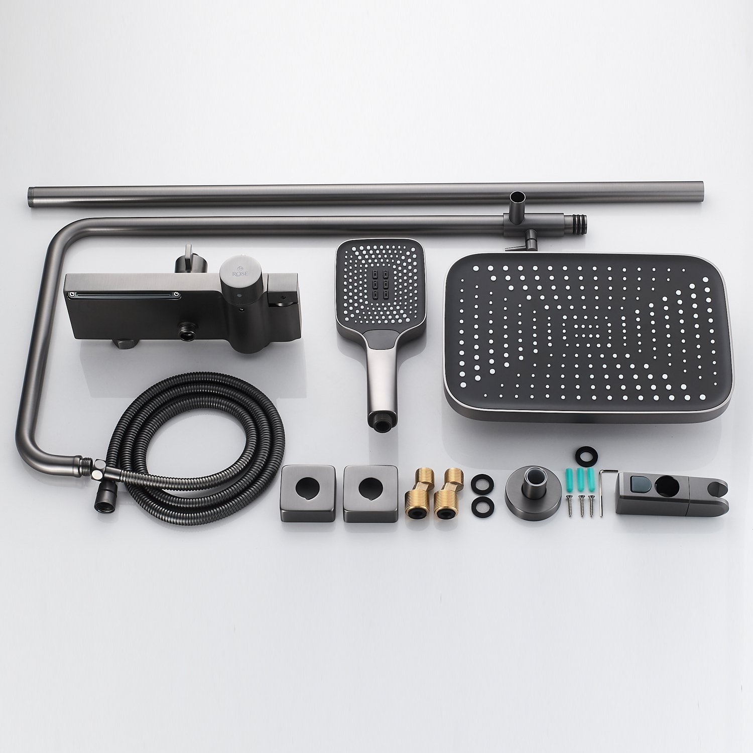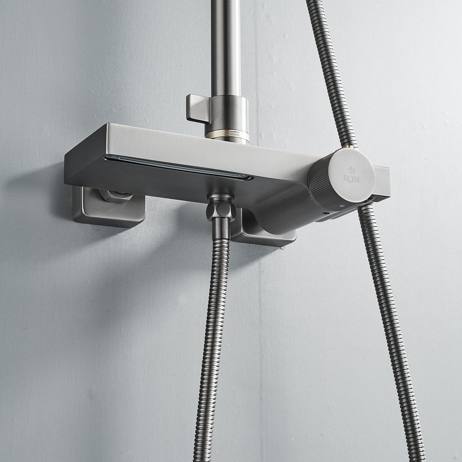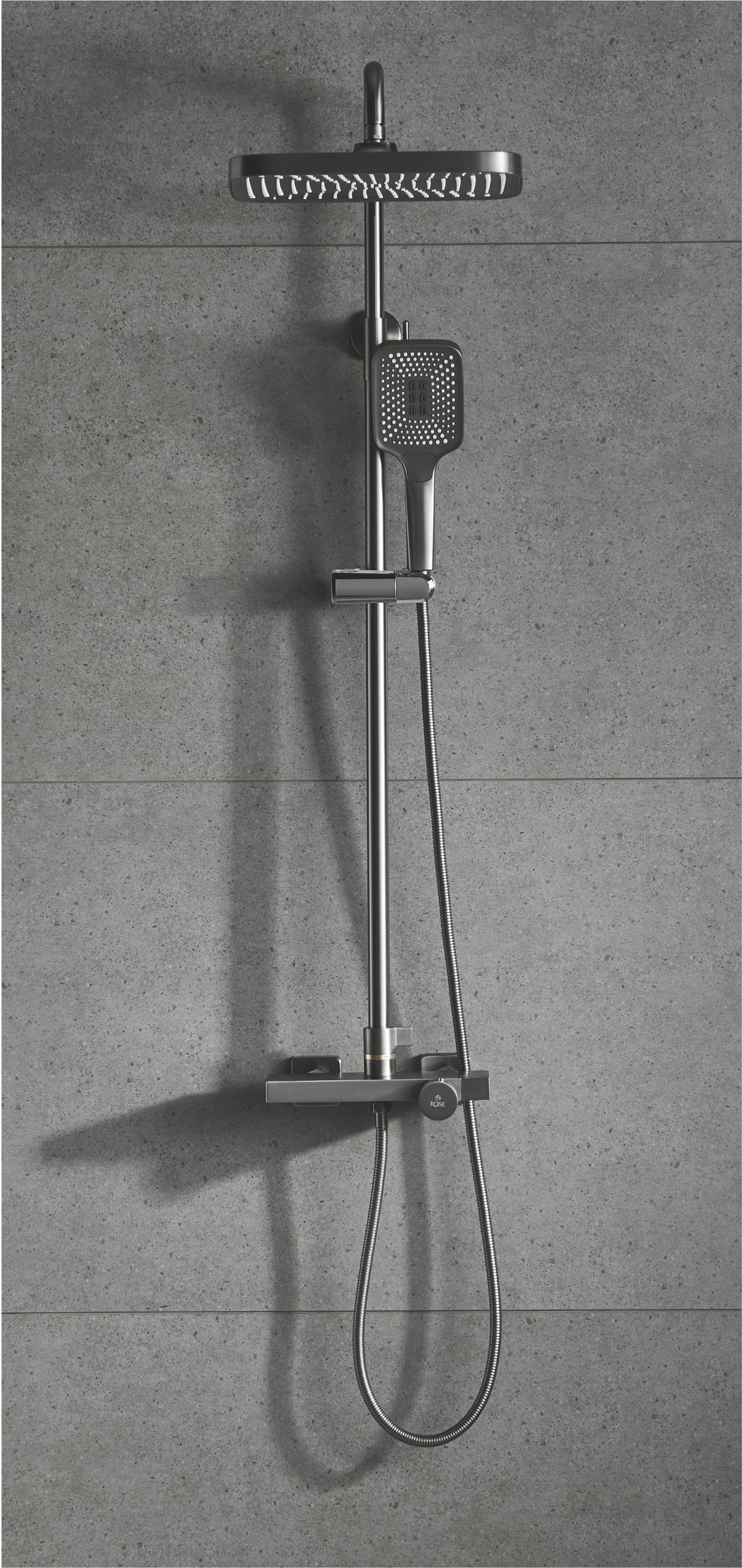 смеситель, верхний душ, штанга с держателем душевой лейки, душевая лейка, шланг, эксцентрики