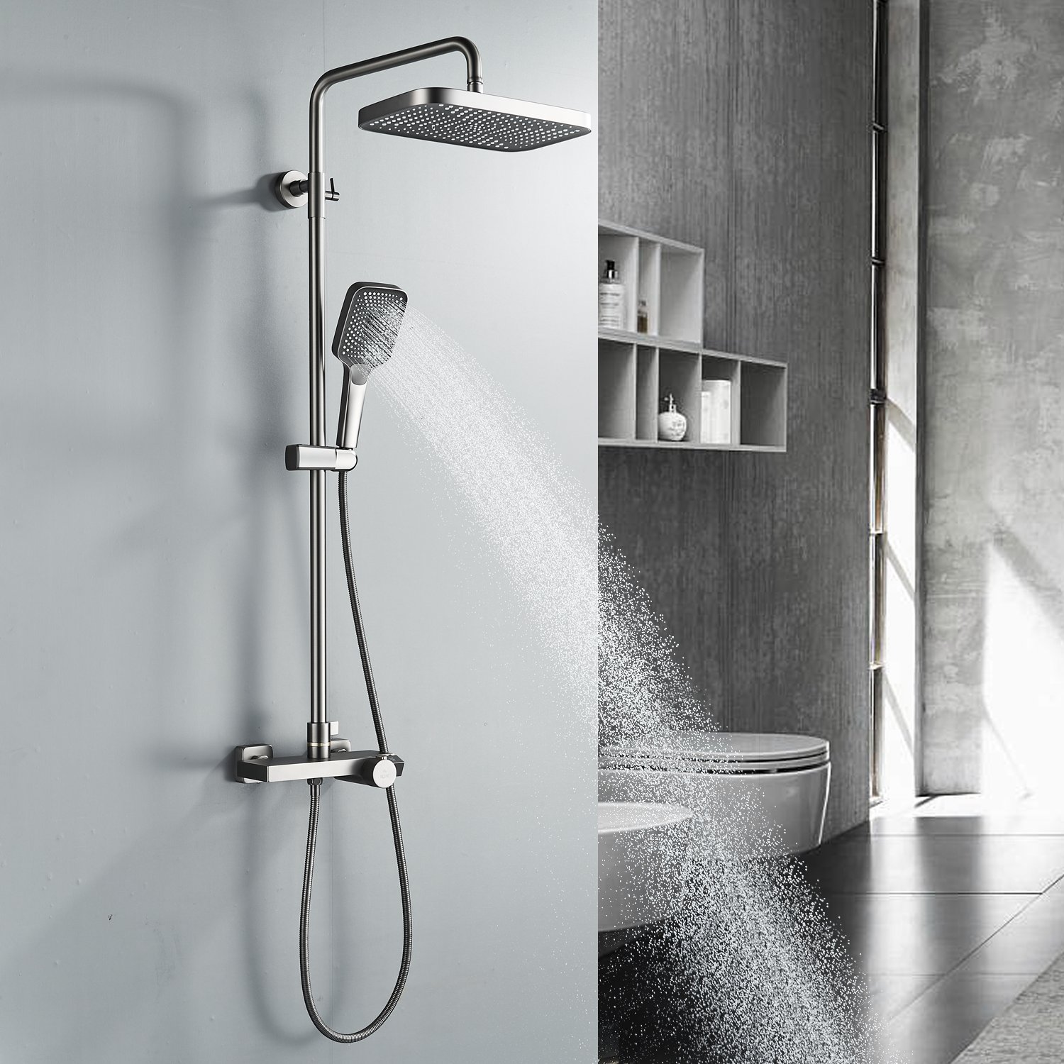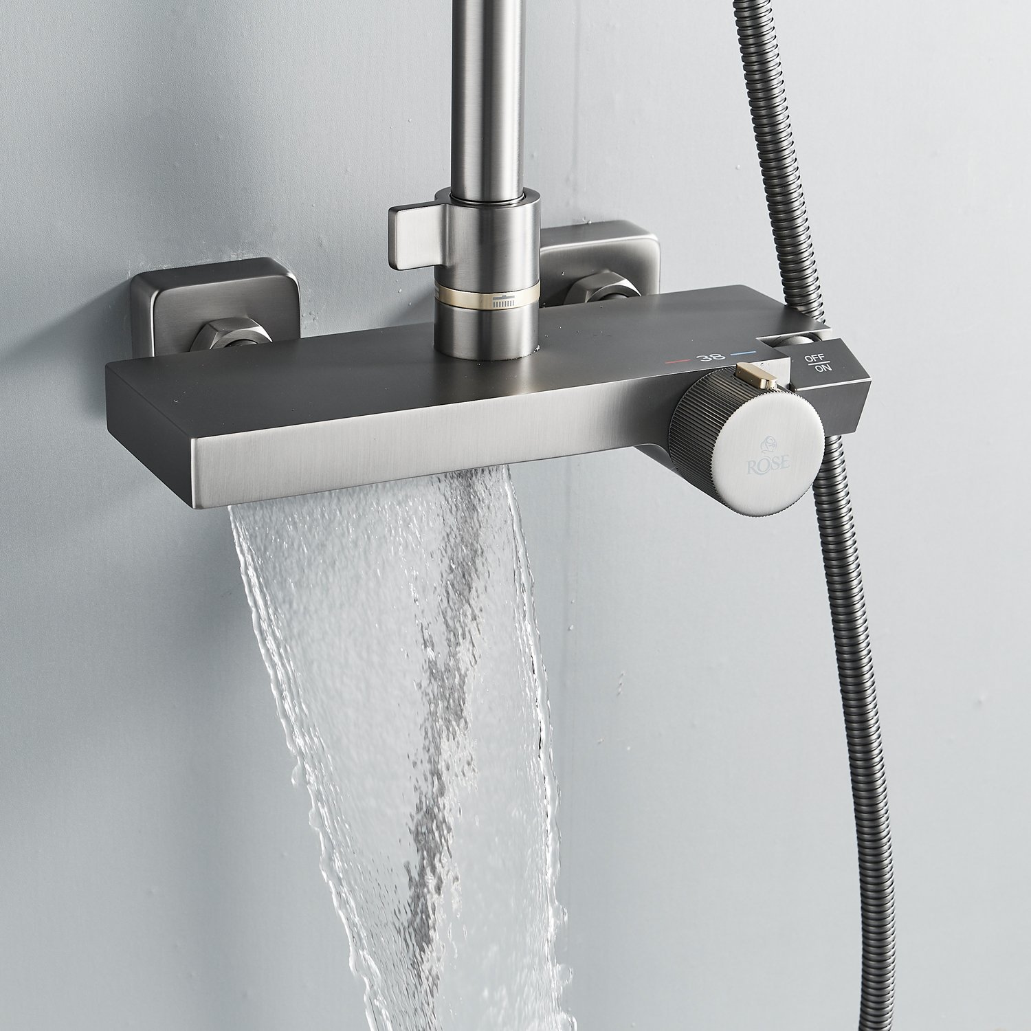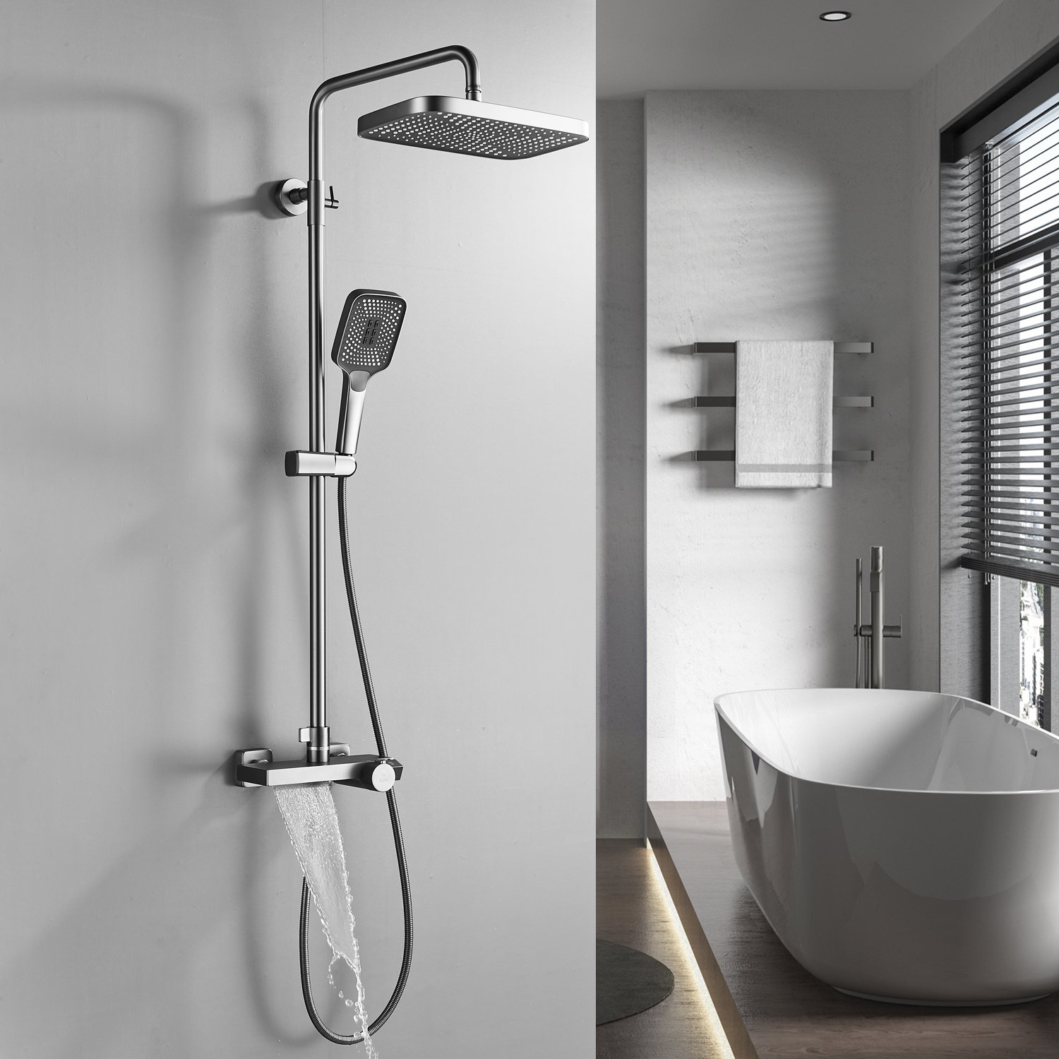 смеситель, верхний душ, штанга с держателем душевой лейки, душевая лейка, шланг, эксцентрики
