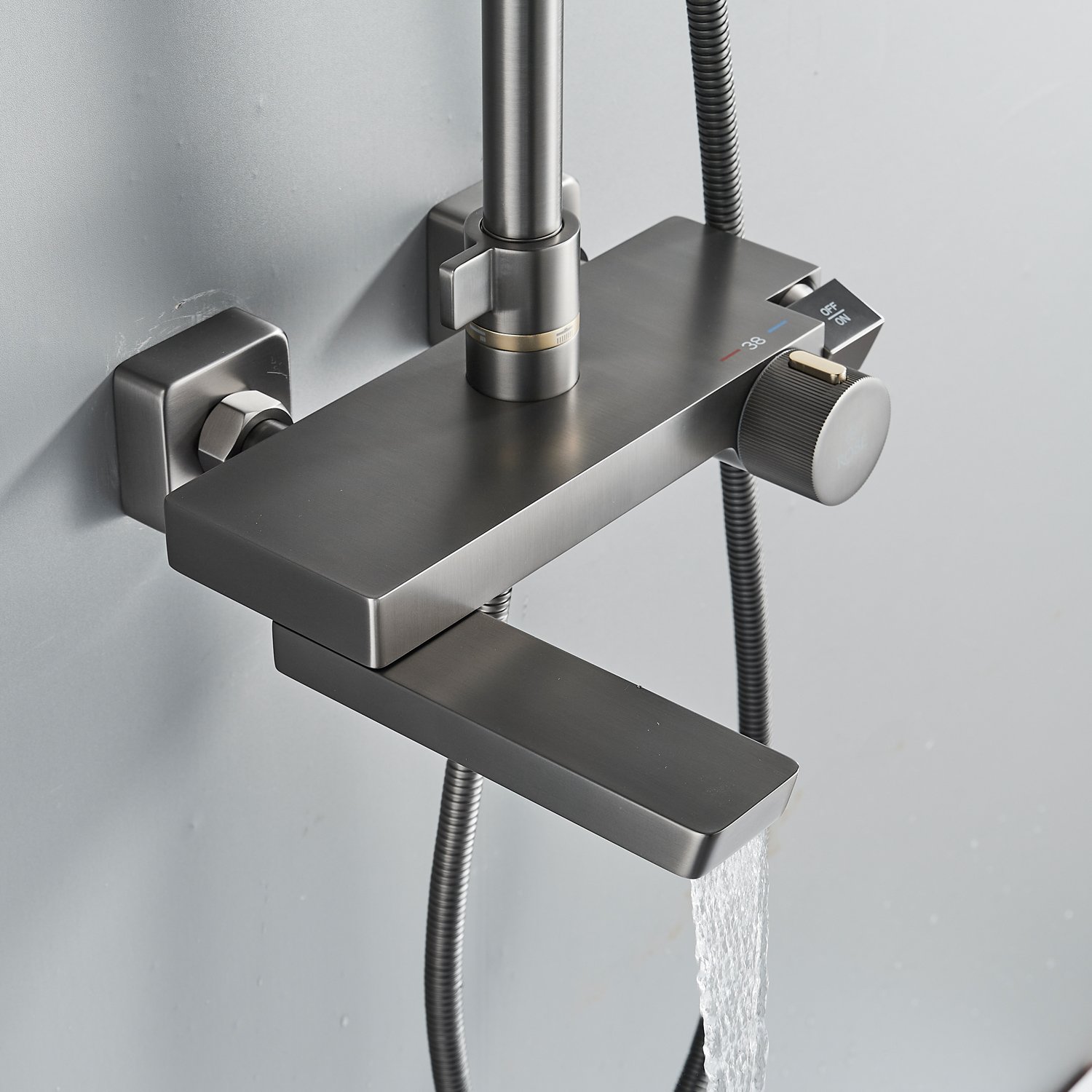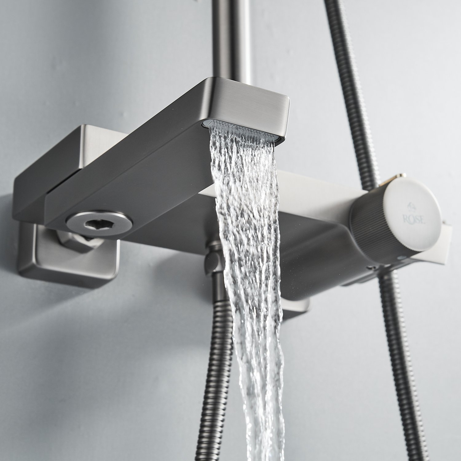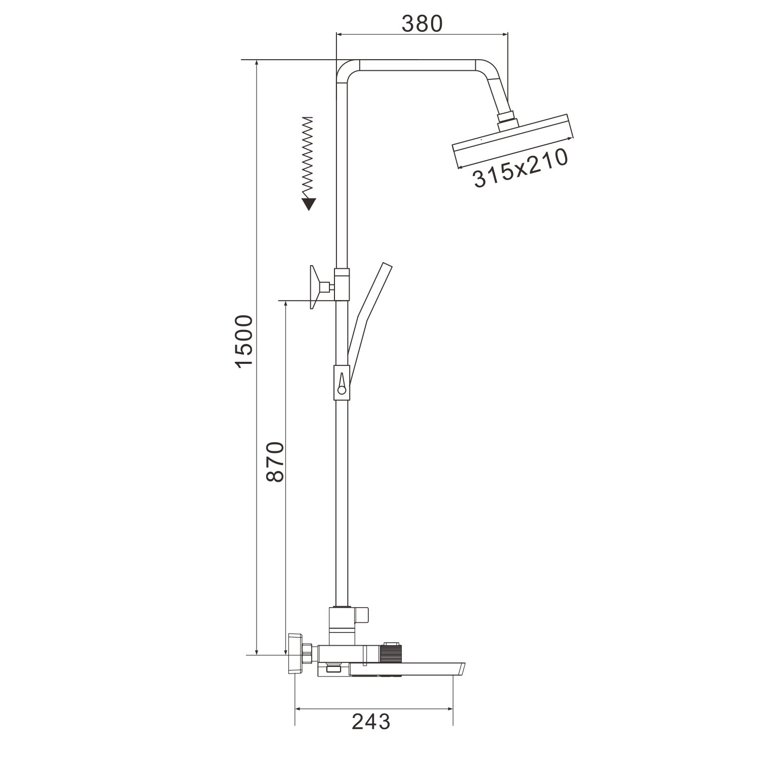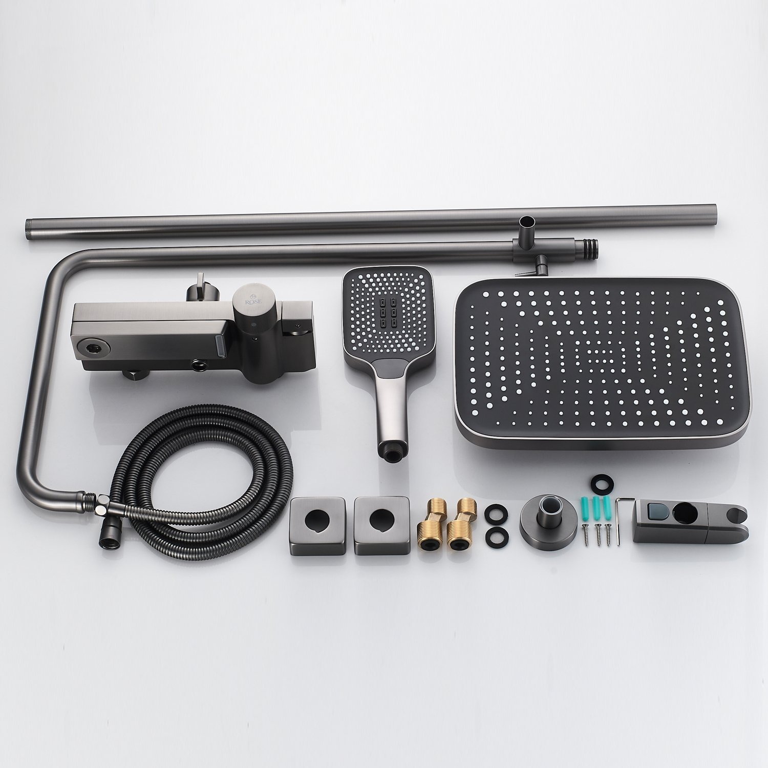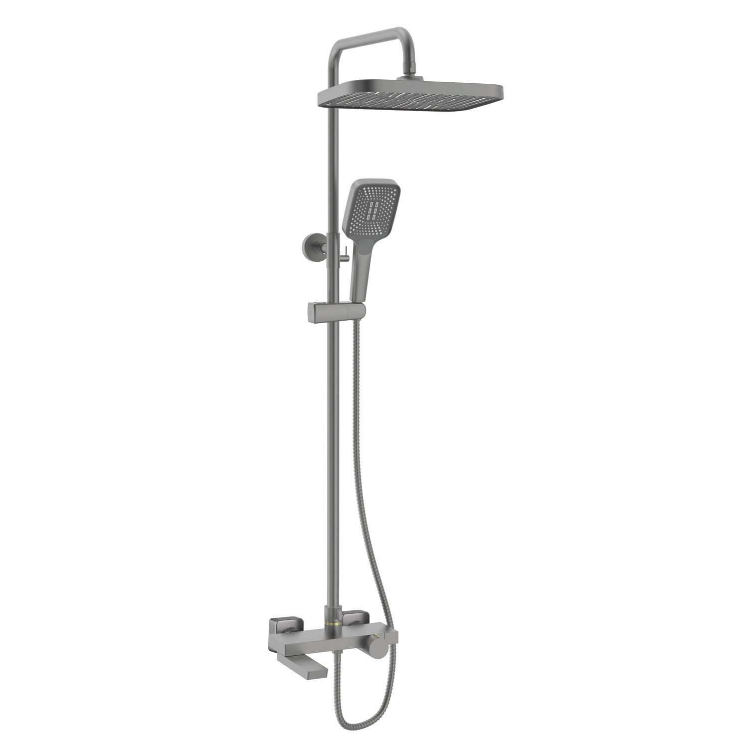 смеситель, верхний душ, штанга с держателем душевой лейки, душевая лейка, шланг, эксцентрики